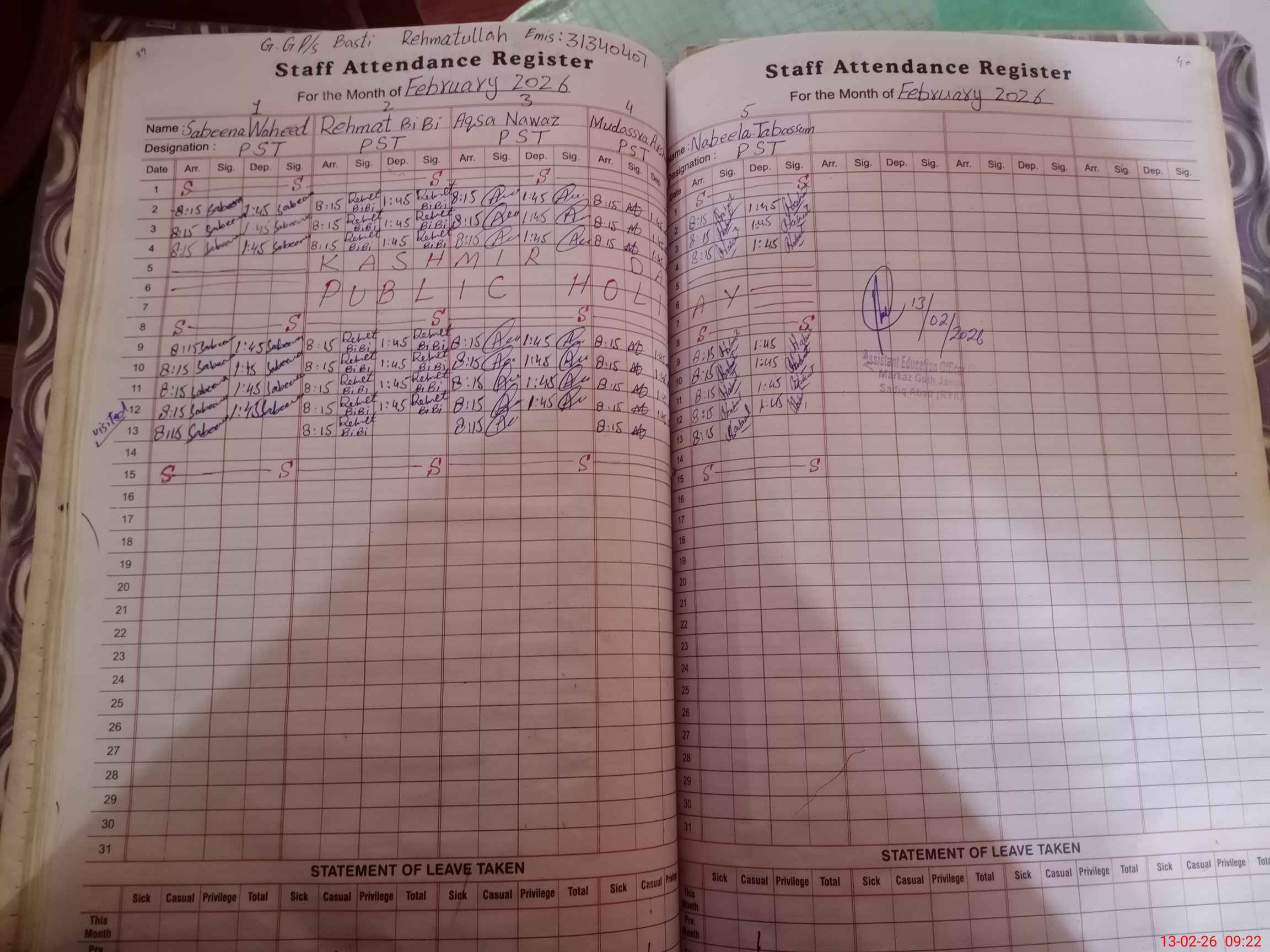 | Name: Sa**** Wa**** Designation: (School Headmaster's/Headmistress's) PST Phone/Cell Number: 03**** |
