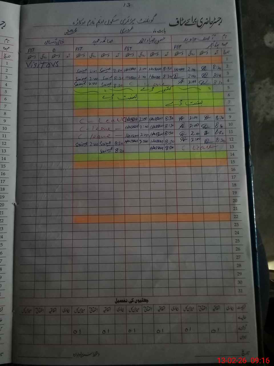 | CNIC | Full Name | Designation | R/C | Absence During Last Calender Month |