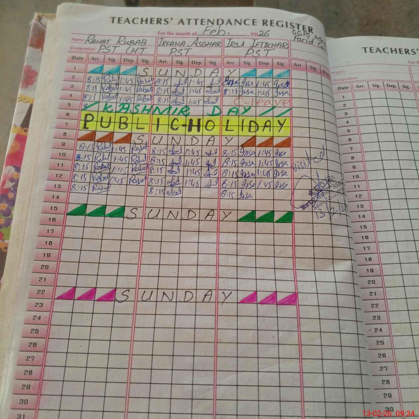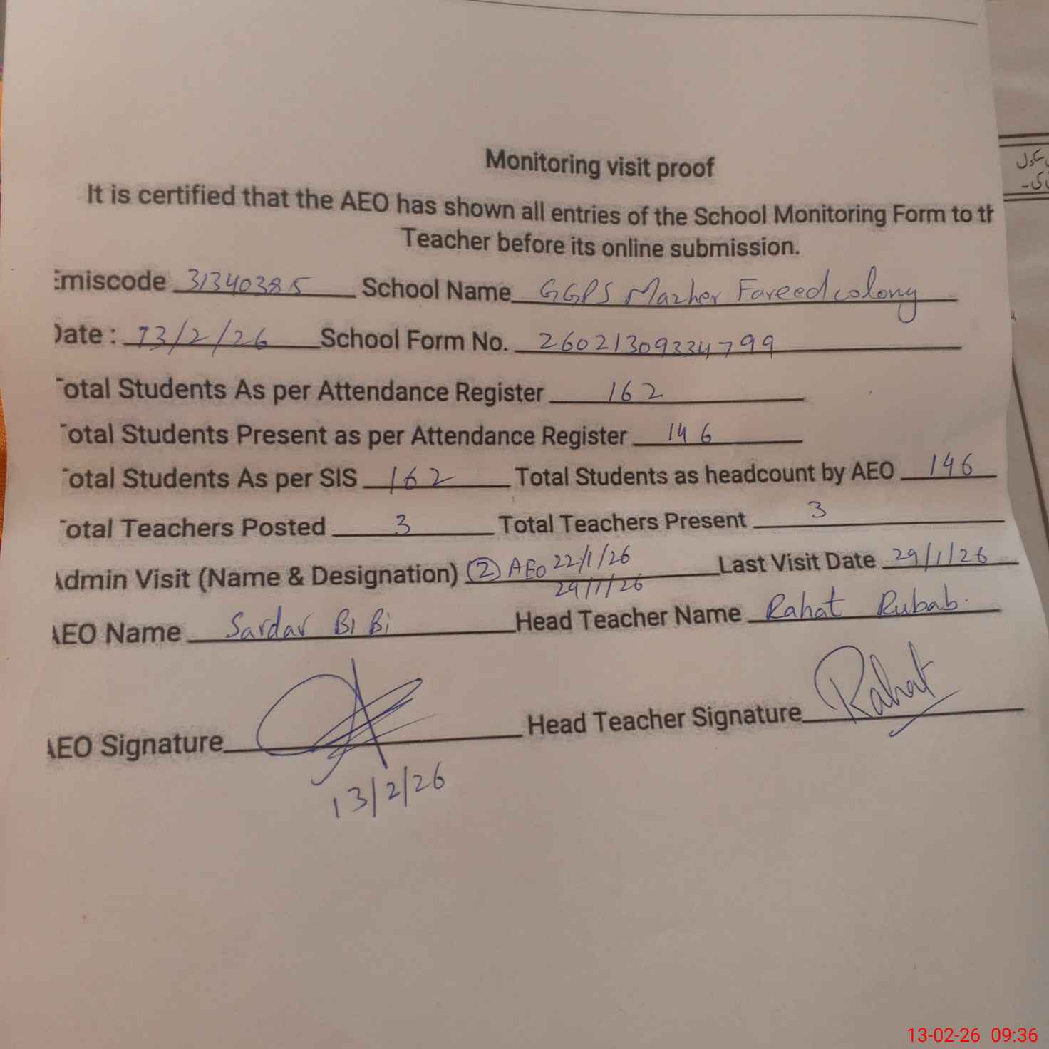 | EMIS Code: 31340385 | Name of School: GGPS MAZHAR FARID COLONY | |||