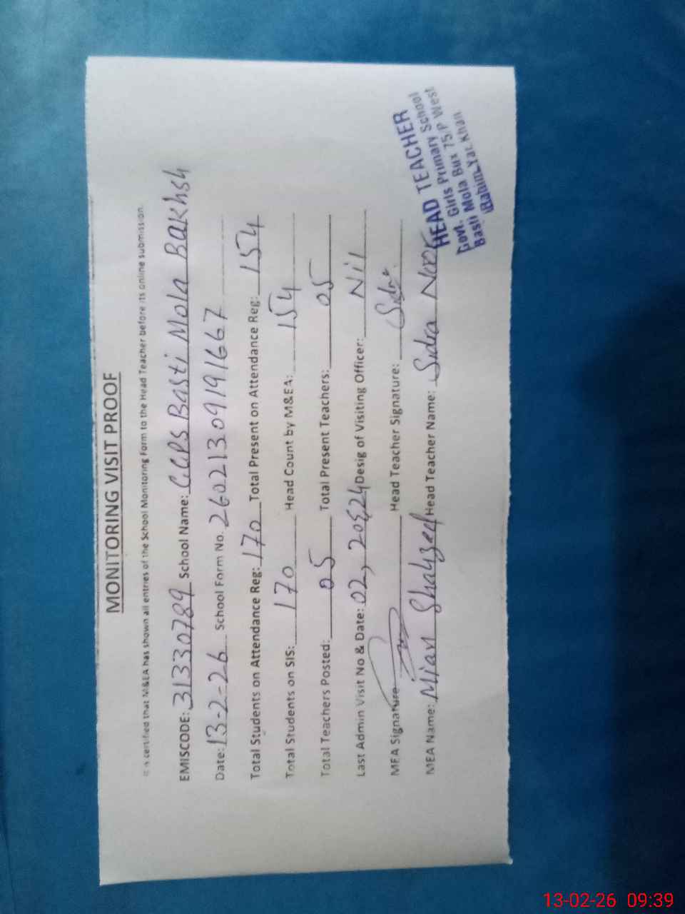 | EMIS Code: 31330789 | Name of School: GGPS BASTI MOLA BAKHSH | |||