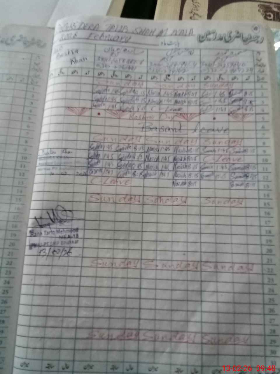 | CNIC | Full Name | Designation | R/C | Absence During Last Calender Month |