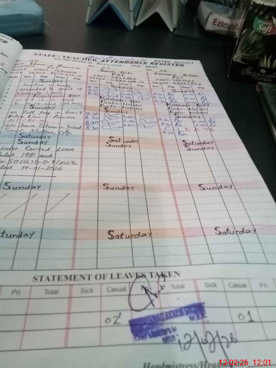 | 36**** | Um**** | PST Arts | Regular | 0 | 0 | 0 | 0 | 0 | 0 | 0 | 0 | 0 | Maternity |