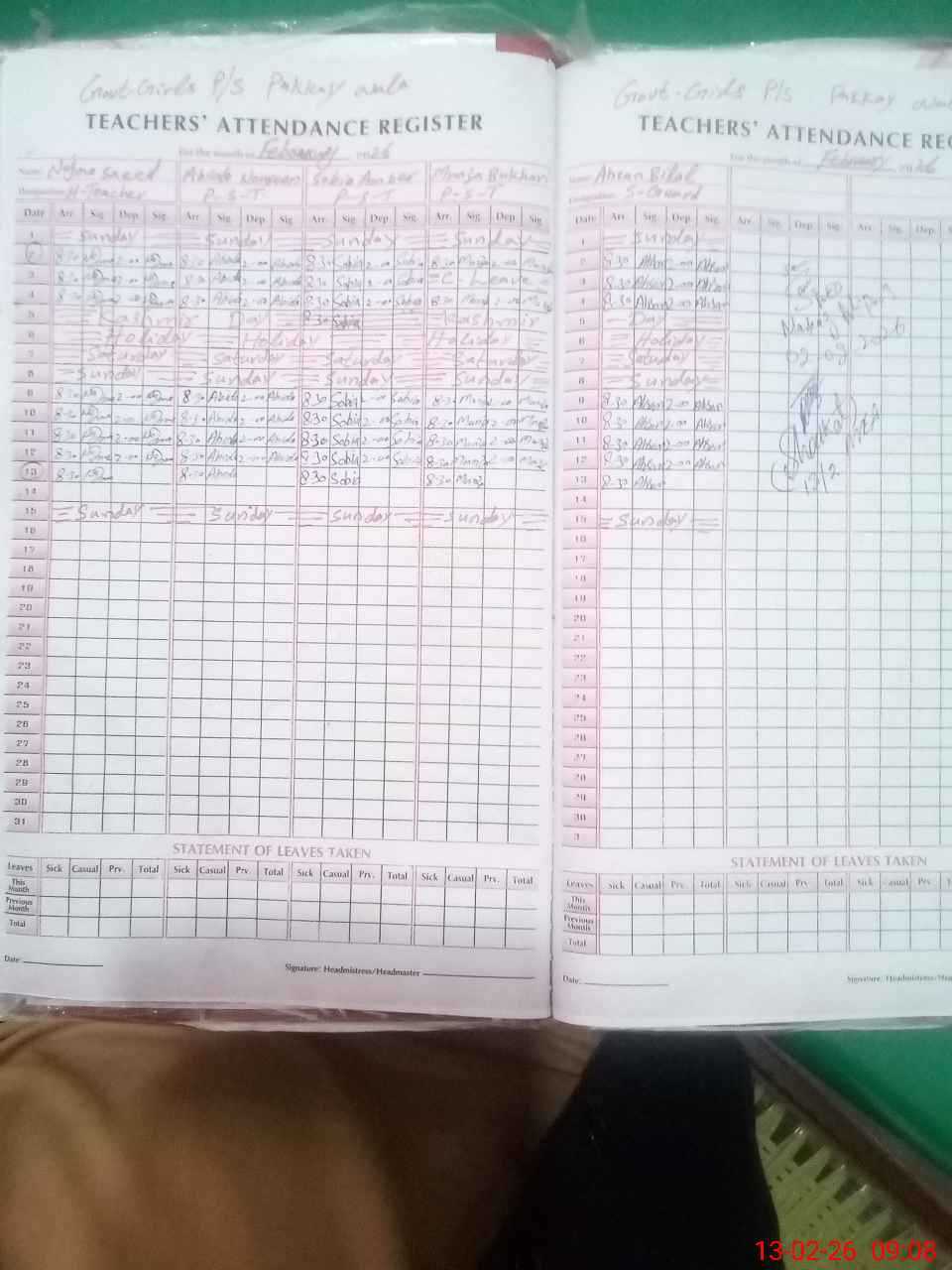 | Name: NA**** SA**** Designation: (School Headmaster's/Headmistress's) PST Phone/Cell Number: 03**** |