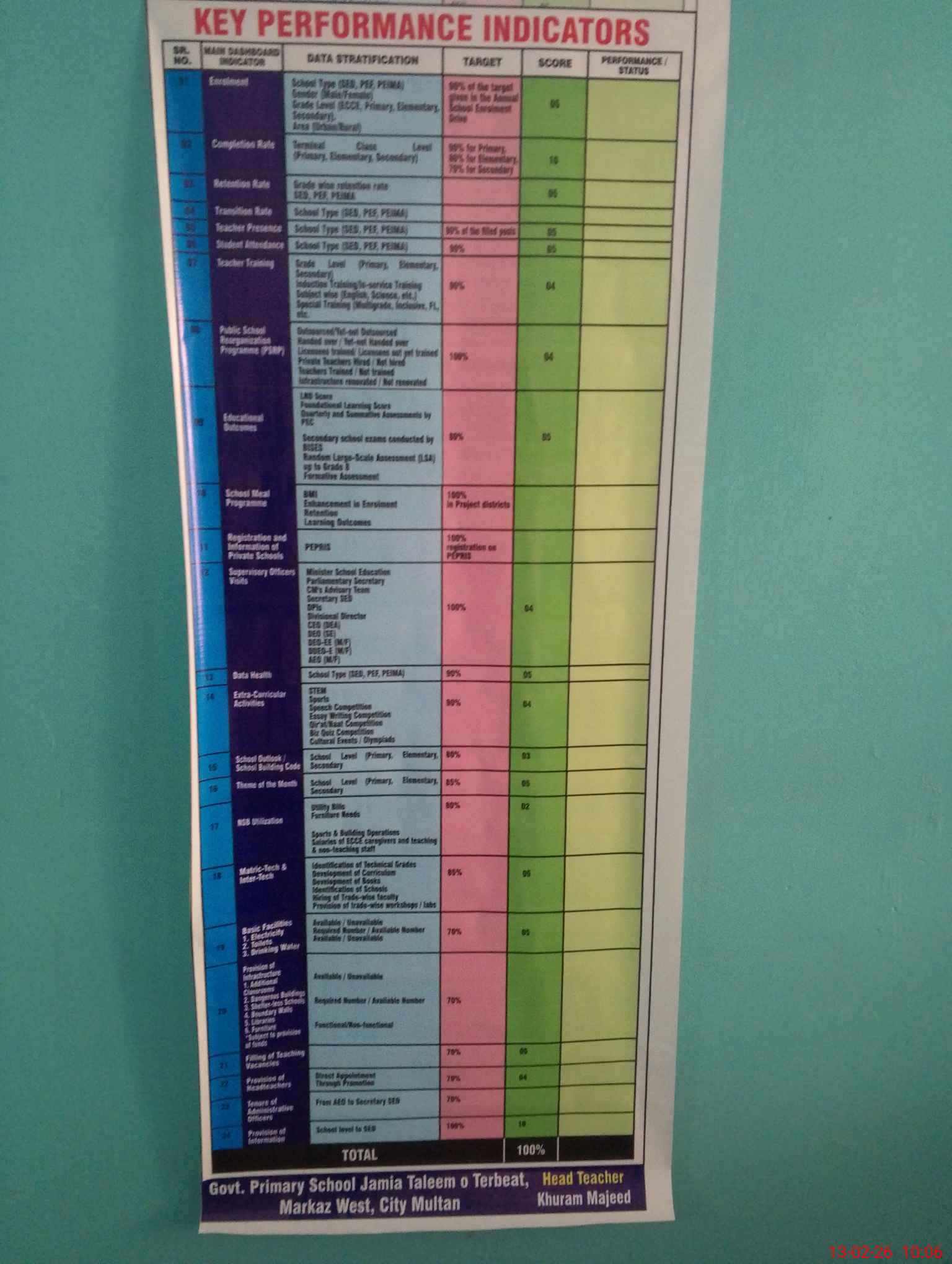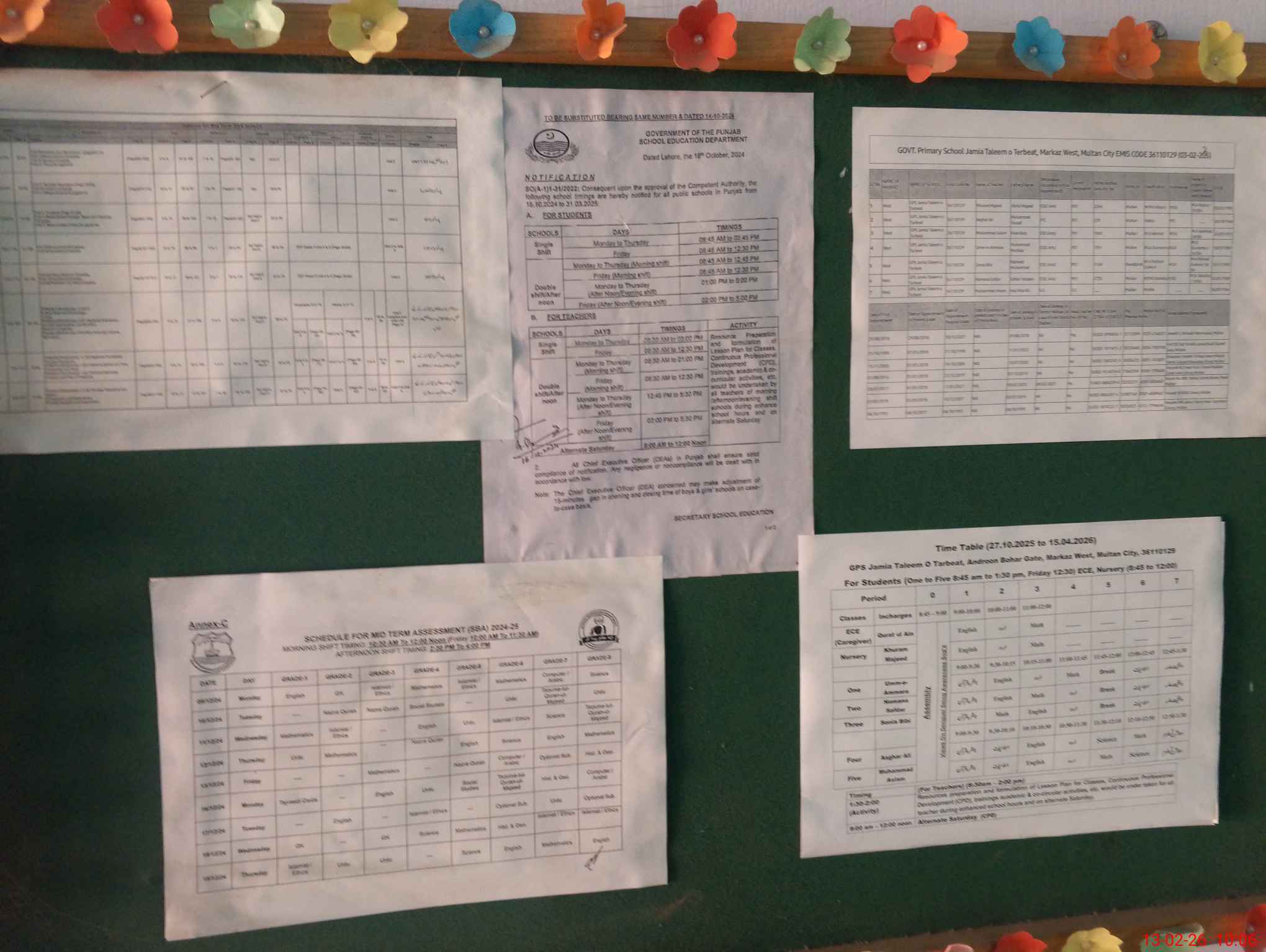 | EMIS Code: 36110129 | Name of School: GPS JAMIA TALEEM O TERBEAT INSIDE BOHER GATE MULTAN | |||
