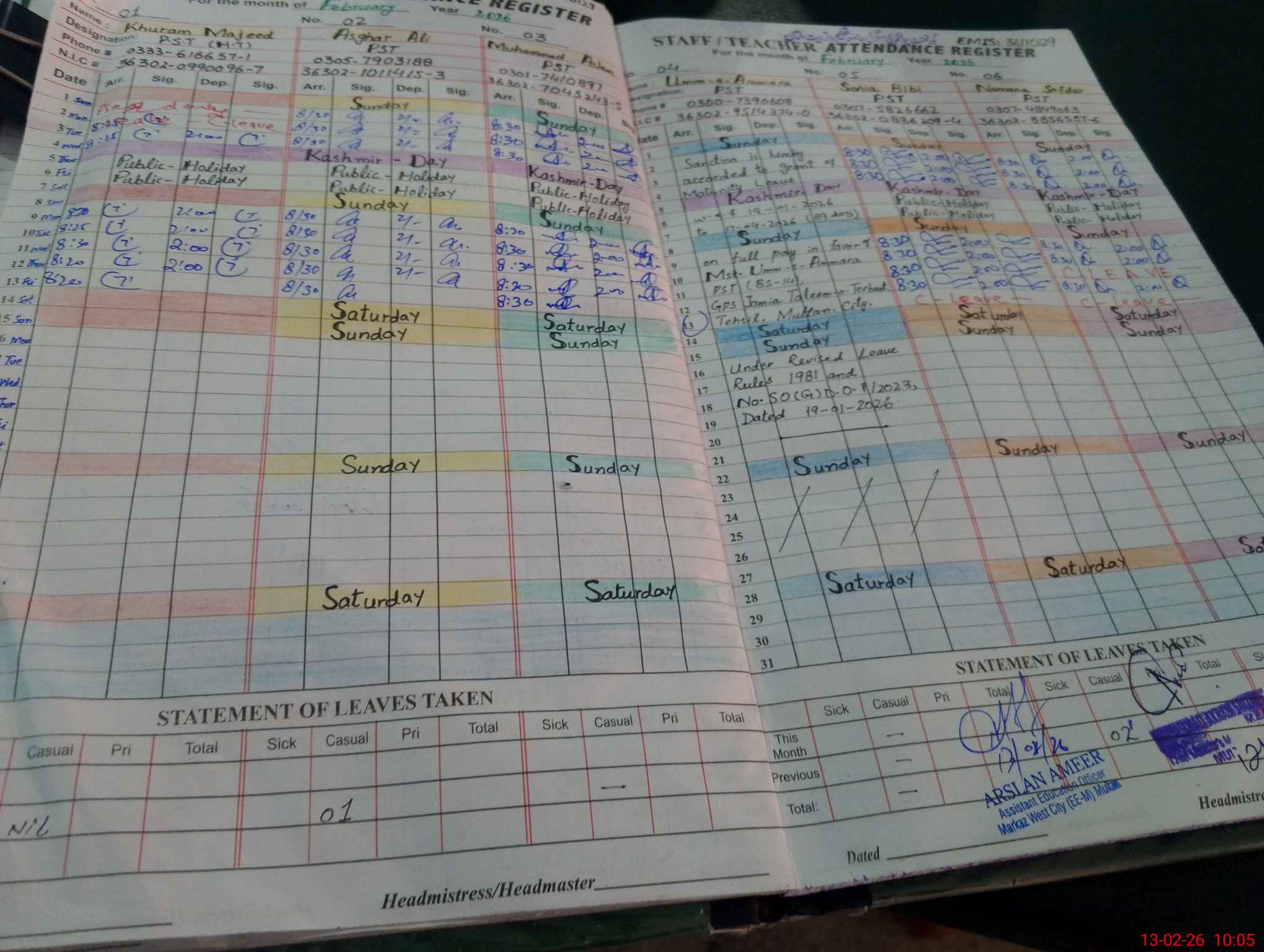 | Name: Kh**** Ma**** Designation: (School Headmaster's/Headmistress's) HEADMASTER Phone/Cell Number: 03**** |
