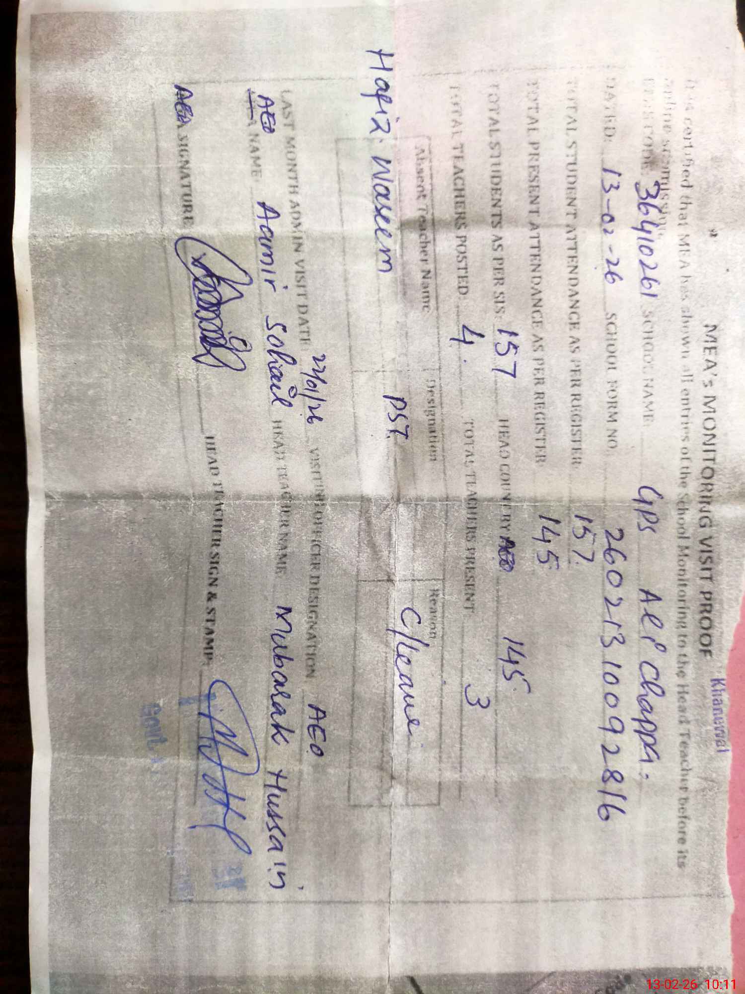 | EMIS Code: 36410261 | Name of School: GPS ALI CHAPPA, P/O 9-B/8-R, ABDUL HAKIM | |||