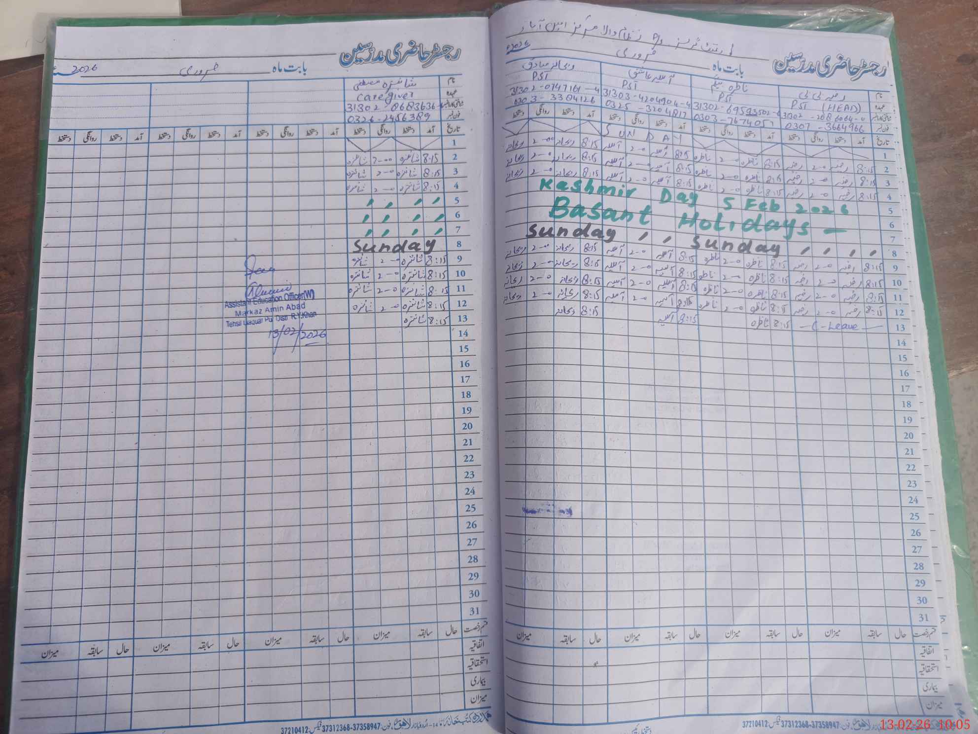 | Name: RA**** BI**** Designation: (School Headmaster's/Headmistress's) PST Phone/Cell Number: 03**** |