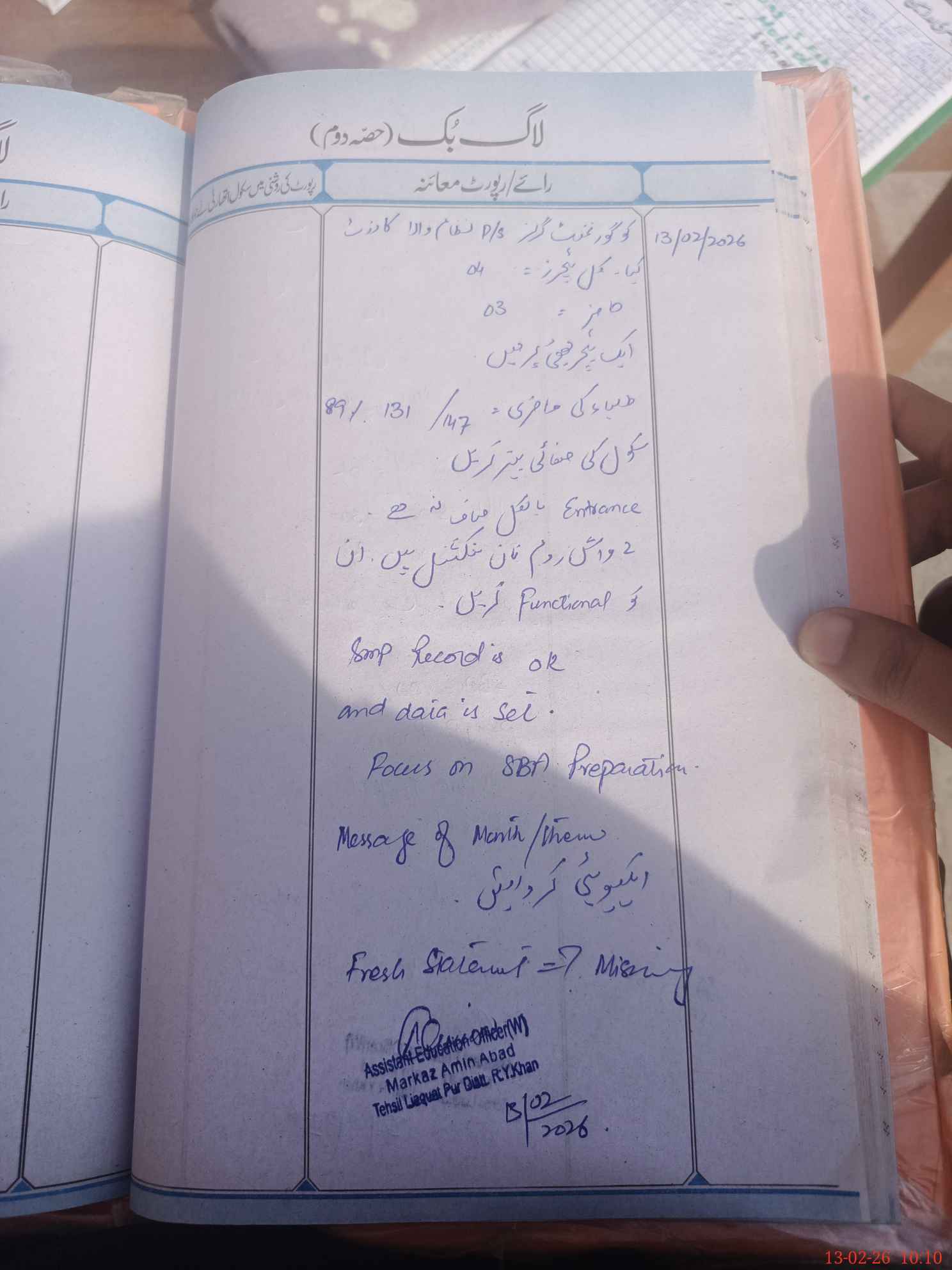 | Certified that this School was Inspected by the Undersigned MEA/DMO Today and the Information Stated Above is as Per Record. | |||||