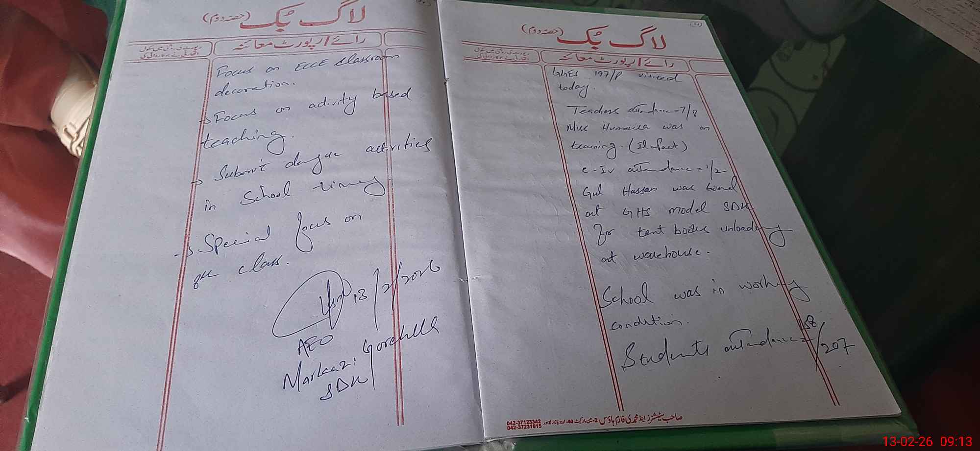 | Attendance Register | Head Teacher | MEA with School | Visit Proof |