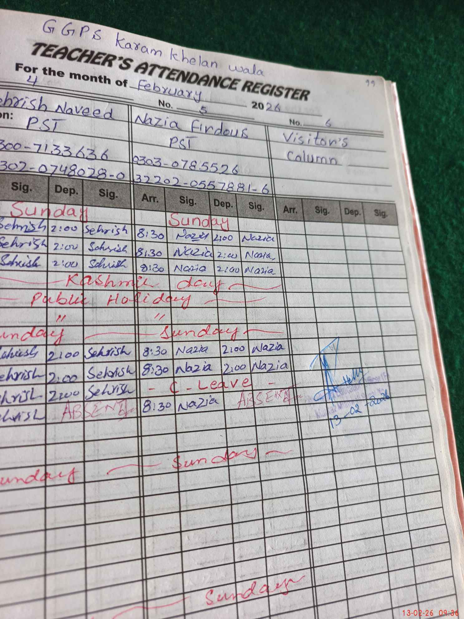 | Name: Fa**** Sh**** Designation: (School Headmaster's/Headmistress's) PST Phone/Cell Number: 03**** |
