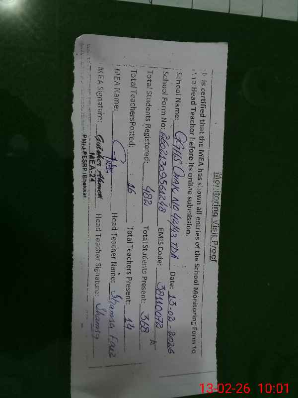 | EMIS Code: 38110072 | Name of School: GGHS CHAK NO. 42-43 TDA | |||
