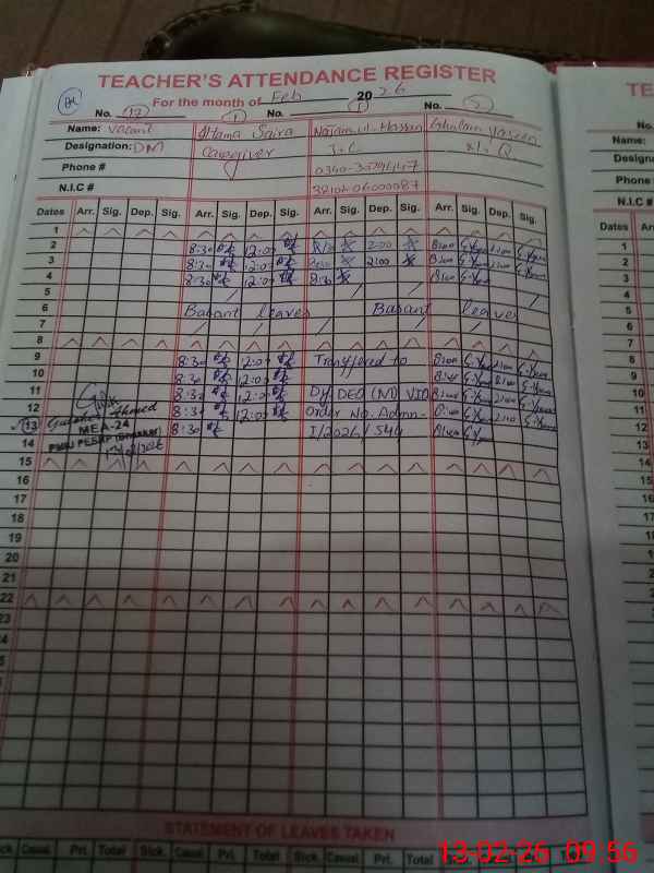 | Name: Sh**** Fa**** Designation: (School Headmaster's/Headmistress's) HEAD MISTRESS Phone/Cell Number: 03**** |