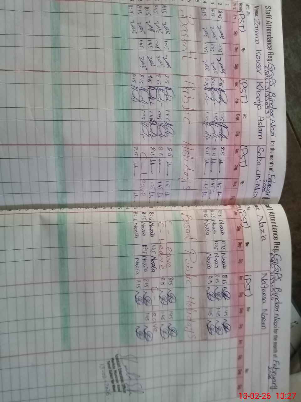 | CNIC | Full Name | Designation | R/C | Absence During Last Calender Month |