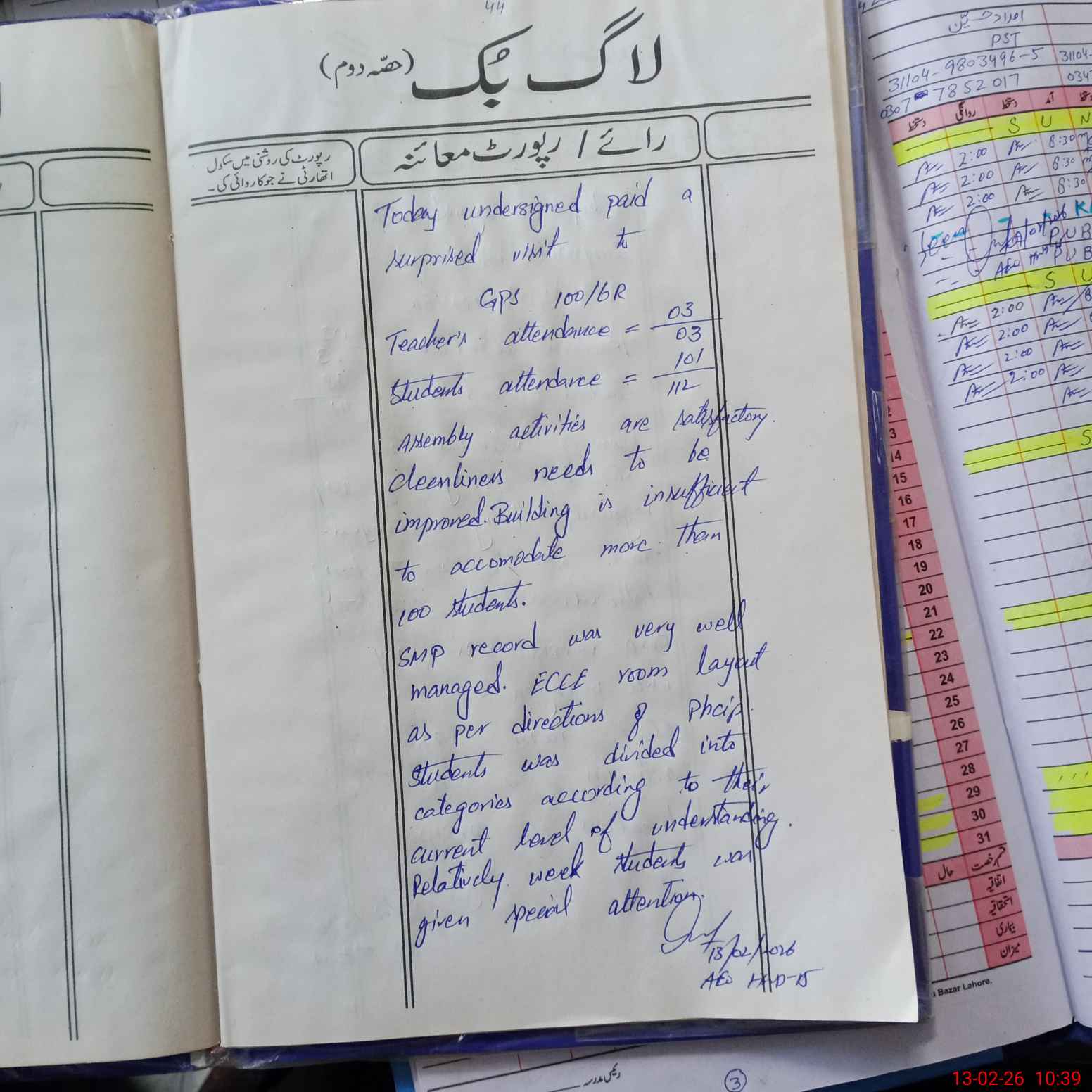 | EMIS Code: 31140520 | Name of School: GPS CHAK NO. 100/6-R | |||