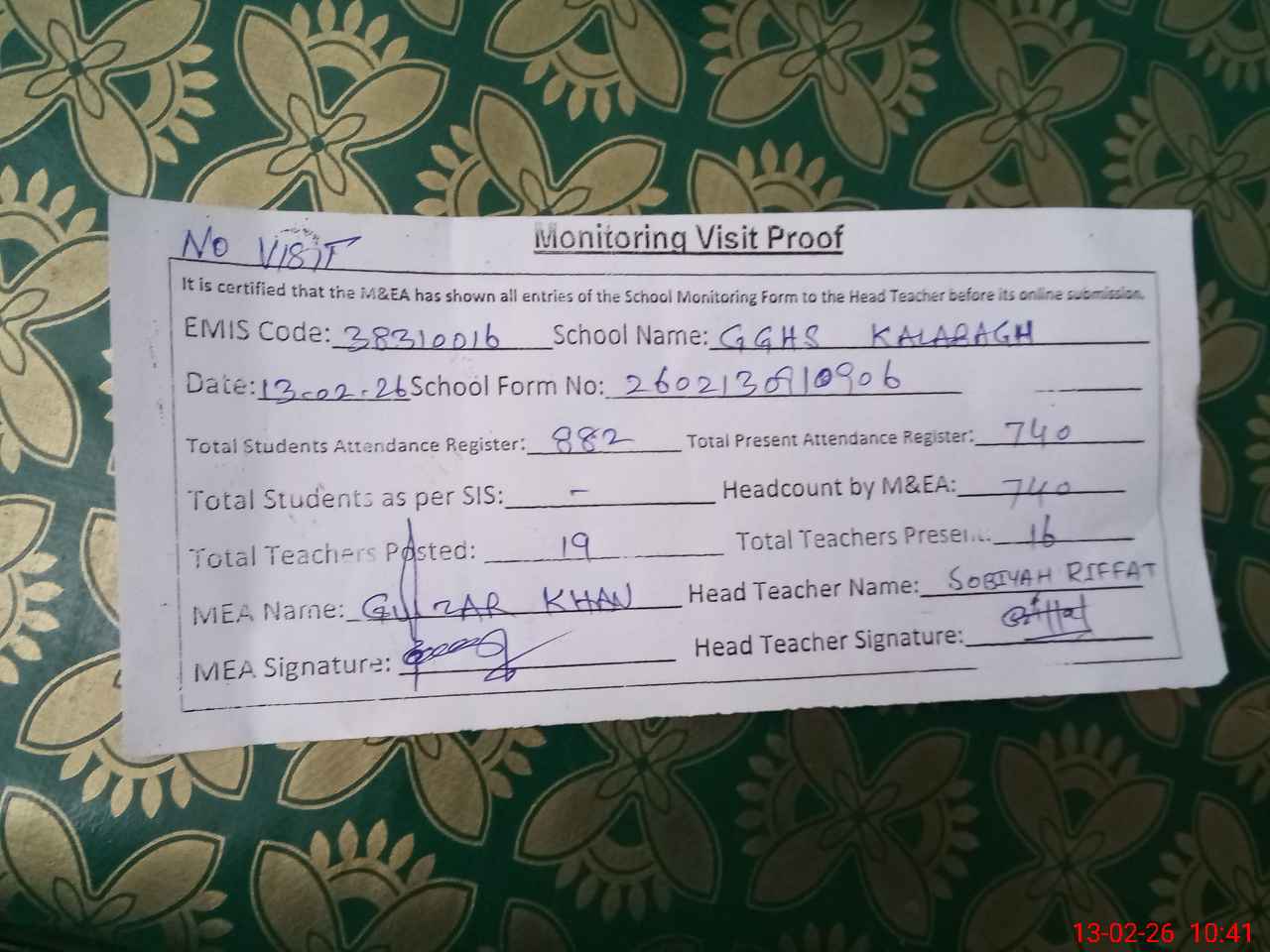 | EMIS Code: 38310016 | Name of School: GGHS KALA BAGH | |||