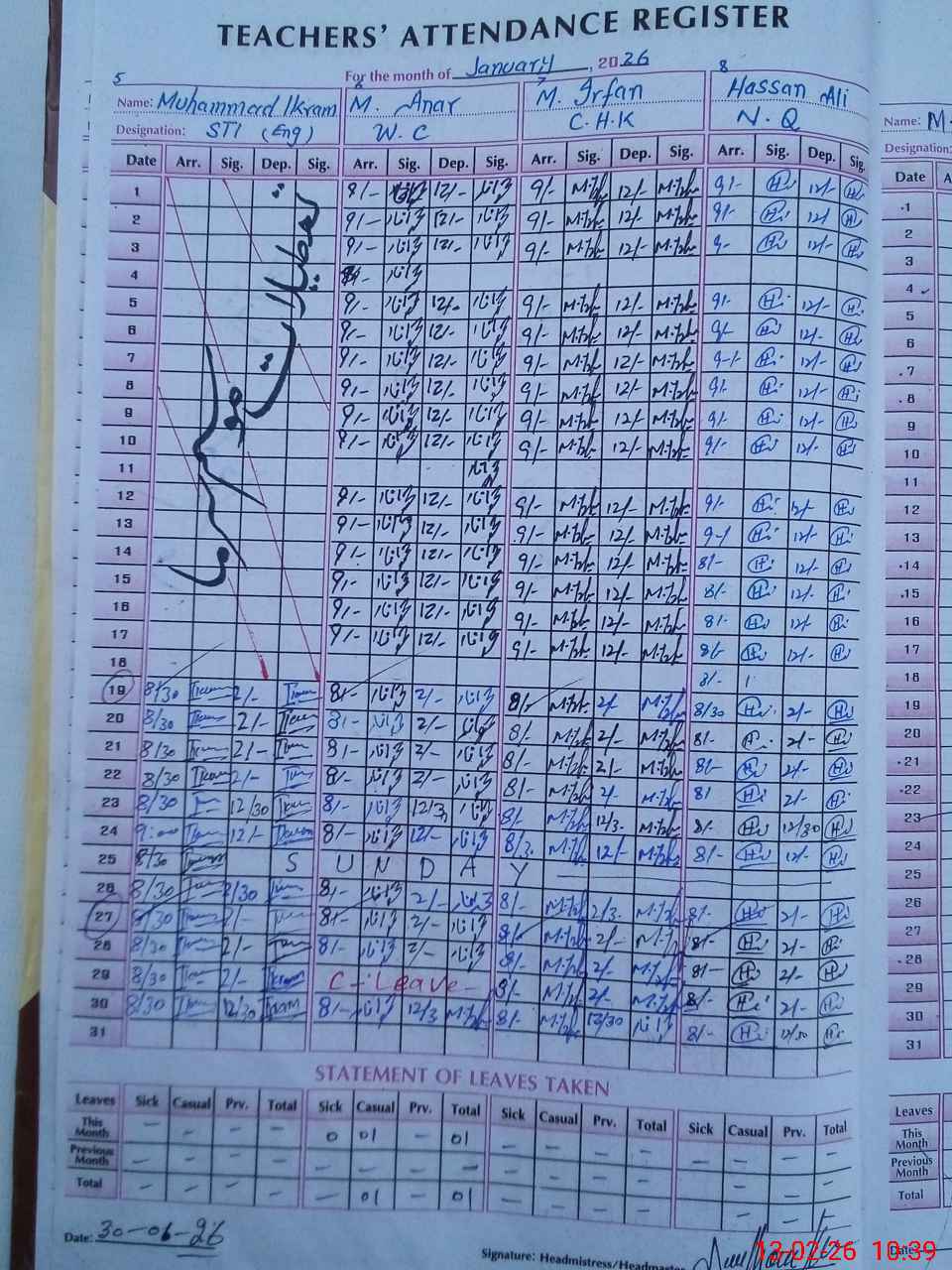 | Name: AM**** IK**** Designation: (School Headmaster's/Headmistress's) PST Phone/Cell Number: 03**** |