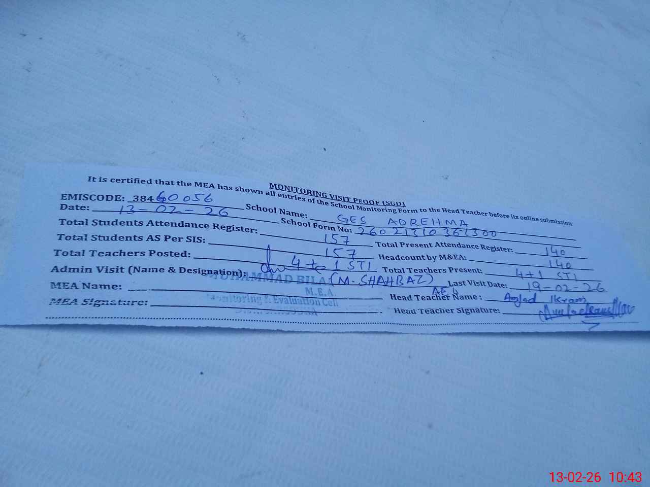 | EMIS Code: 38460056 | Name of School: GES ADREHMA | |||
