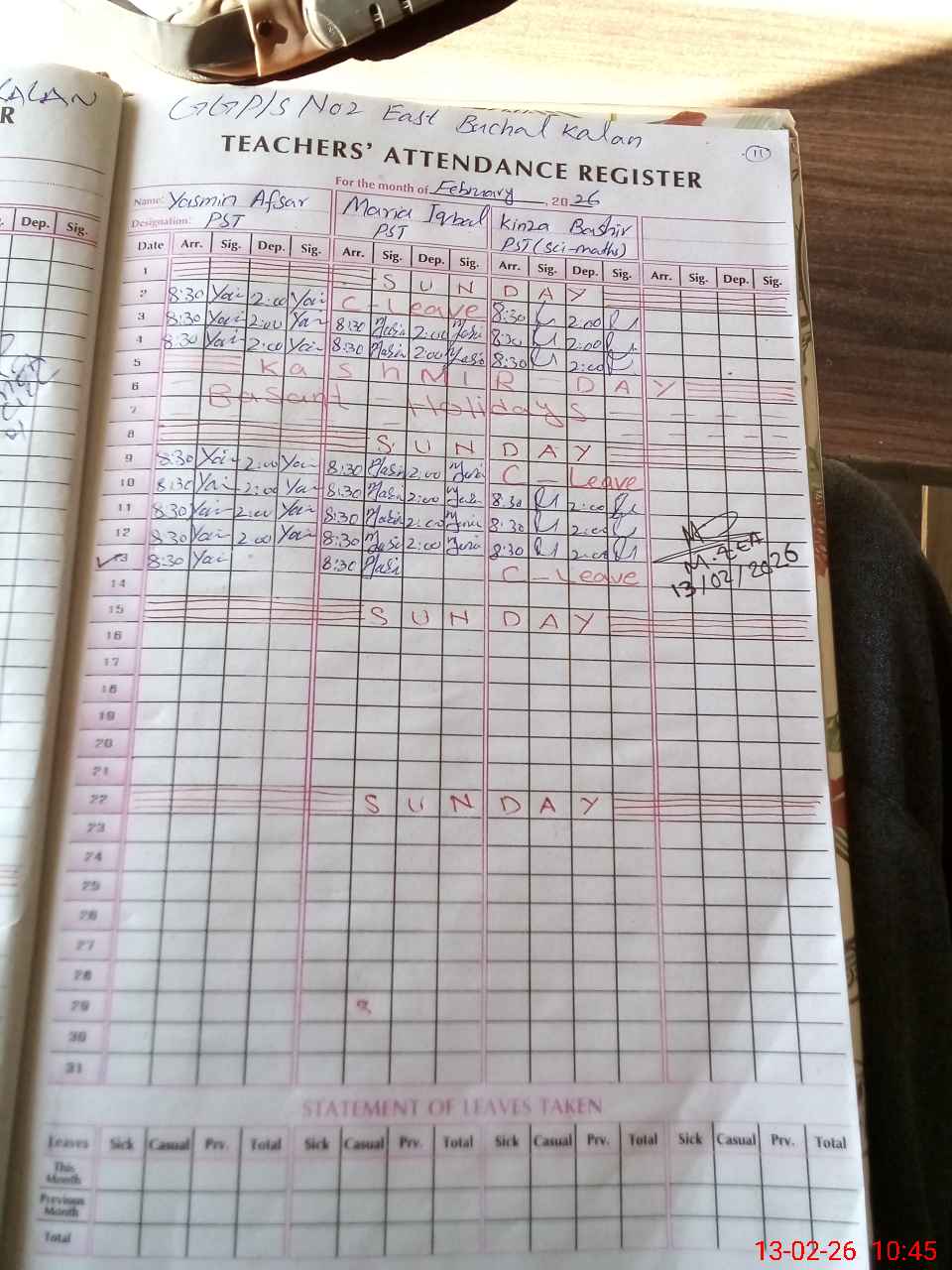 | 37**** | Ki**** Ba**** | PST Science/Maths | Regular | 0 | 0 | 0 | 0 | 0 | 0 | 0 | 0 | 0 | Casual |