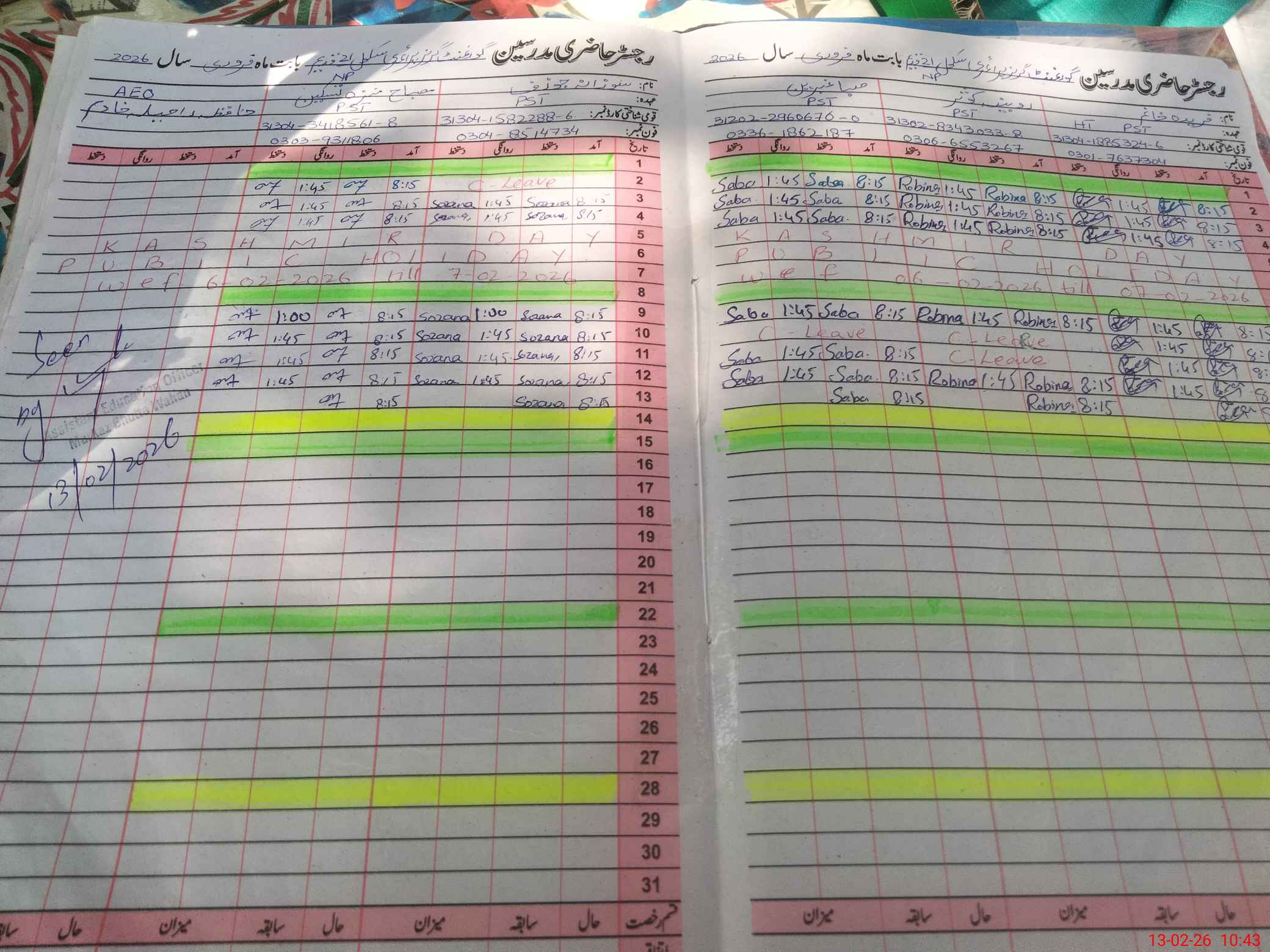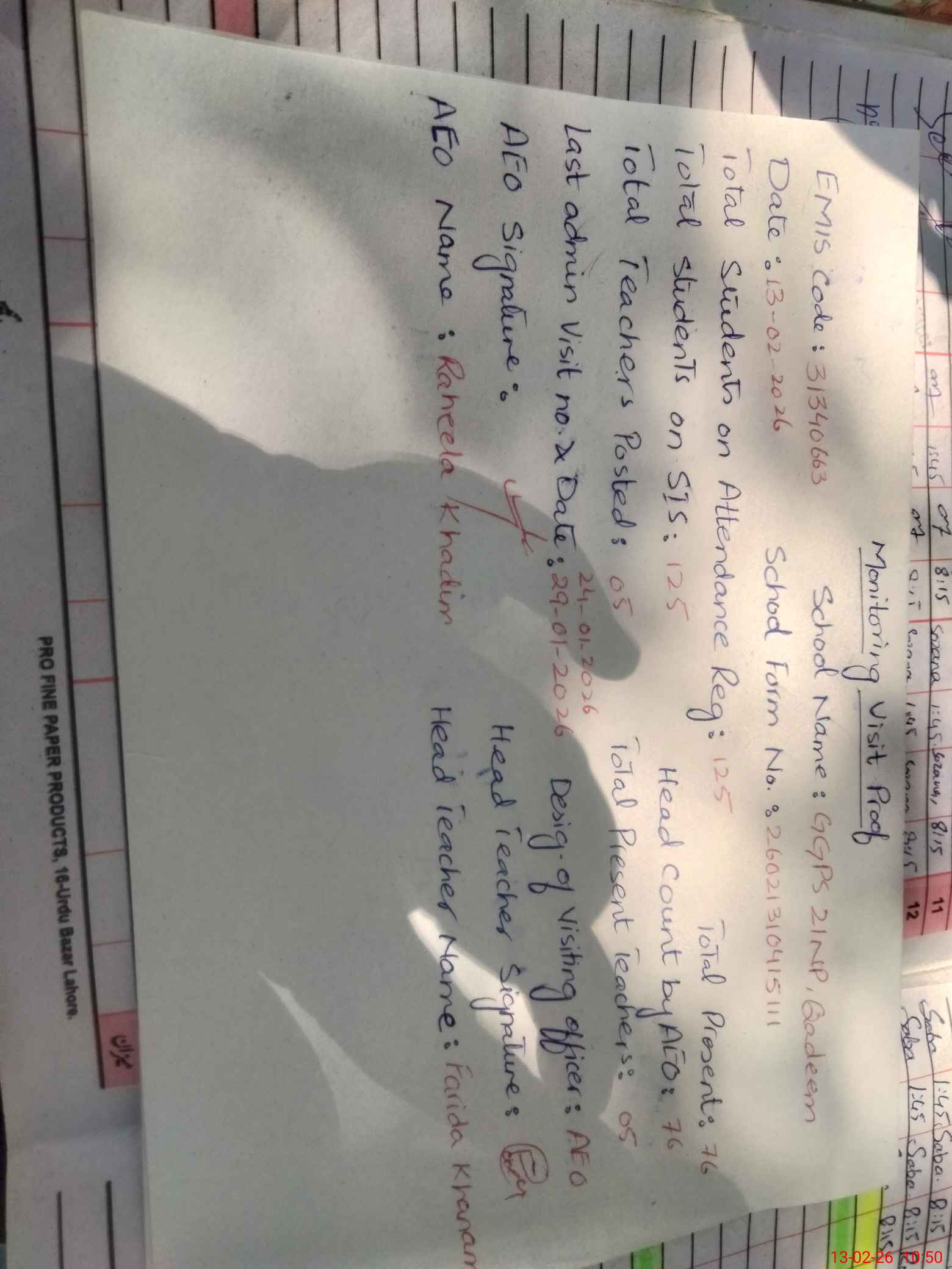| Name: Fa**** Kh**** Designation: (School Headmaster's/Headmistress's) PST Phone/Cell Number: 03**** |