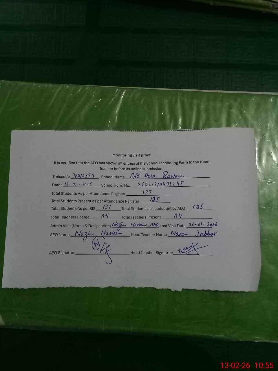 | EMIS Code: 38410354 | Name of School: GPS DERA RAWAN | |||