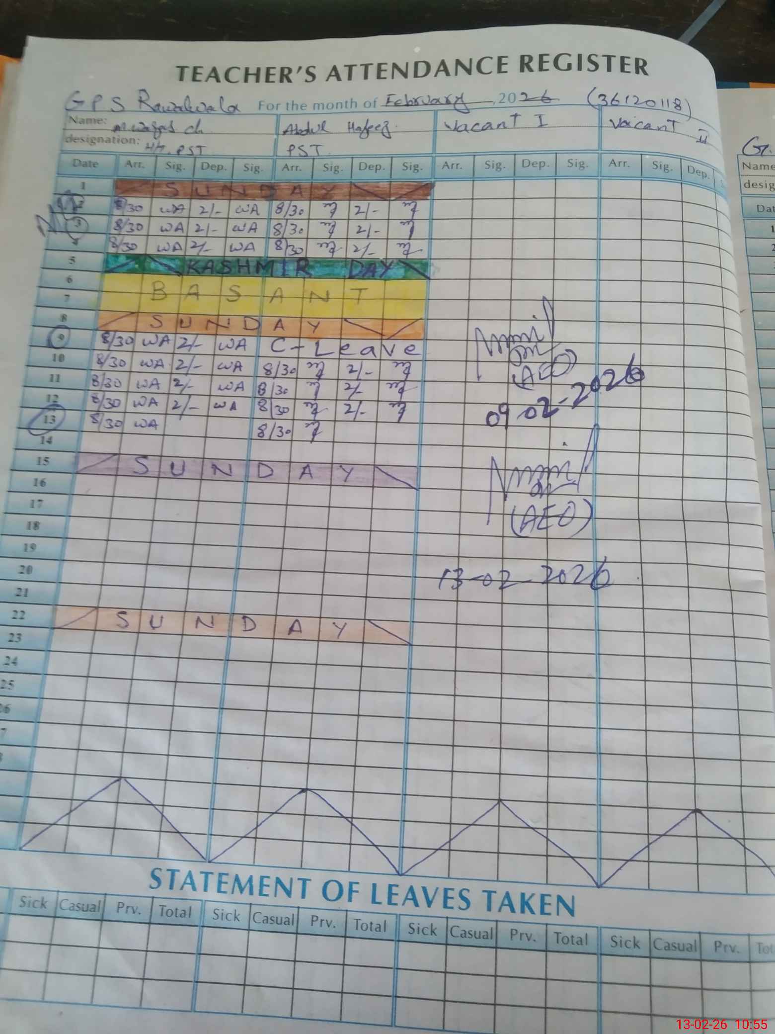 | Leave | Duty | Absent | Maternity | Medical | Ex- Pak |