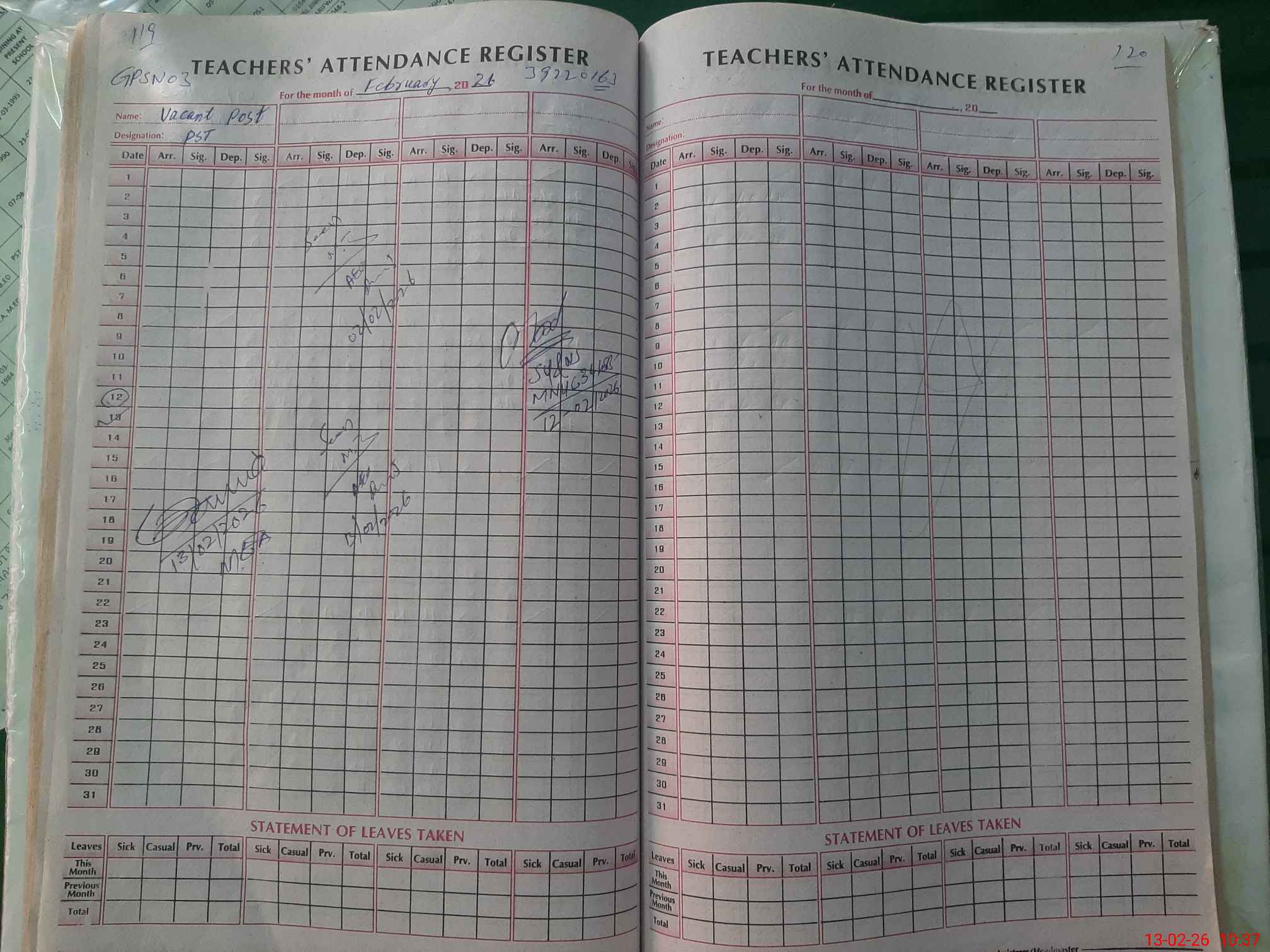 | Name: MU**** IR**** Designation: (School Headmaster's/Headmistress's) PST Phone/Cell Number: 03**** |