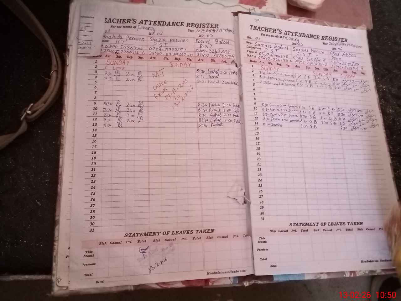 | Name: SH**** PA**** Designation: (School Headmaster's/Headmistress's) PTC/JV Phone/Cell Number: 03**** |