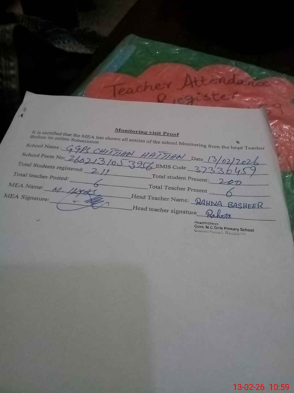 | EMIS Code: 37330459 | Name of School: GGPS MC CHITTIAN HATTIAN MOHALLAHAKHARIDIAN | |||