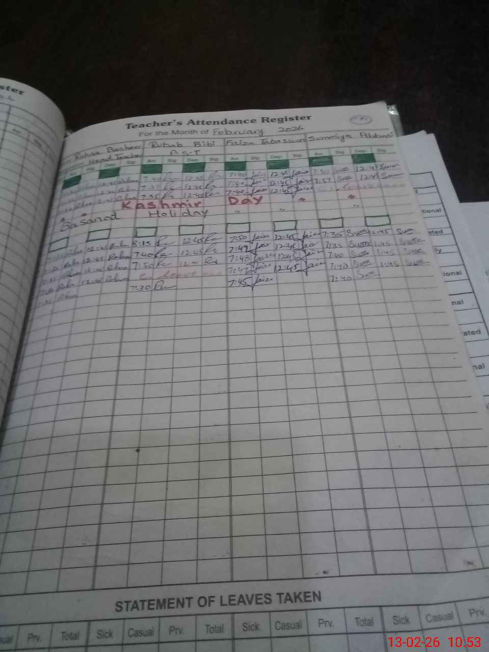 | Leave | Duty | Absent | Maternity | Medical | Ex- Pak |