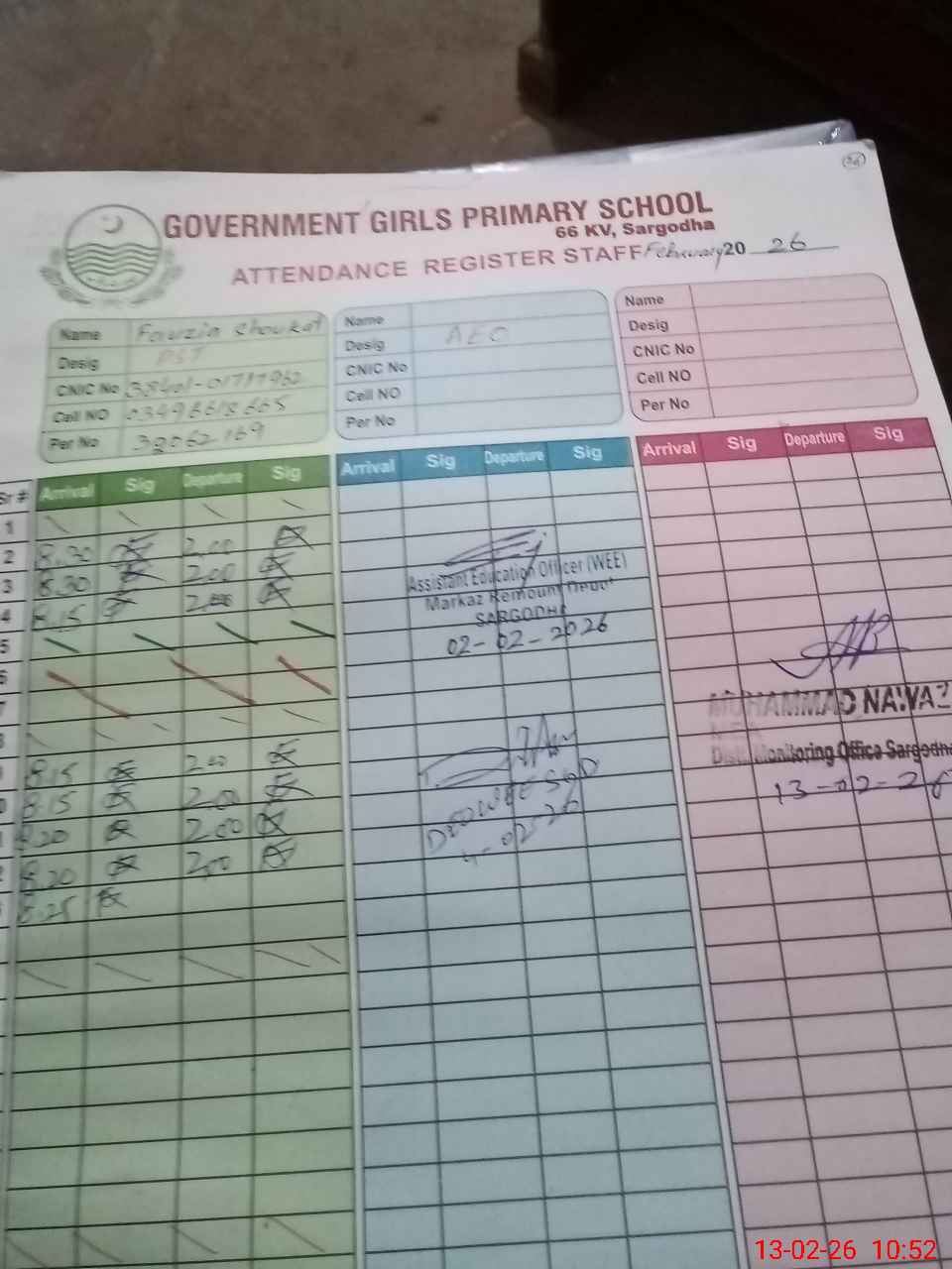 | Name: AS**** SH**** Designation: (School Headmaster's/Headmistress's) PST Phone/Cell Number: 03**** |