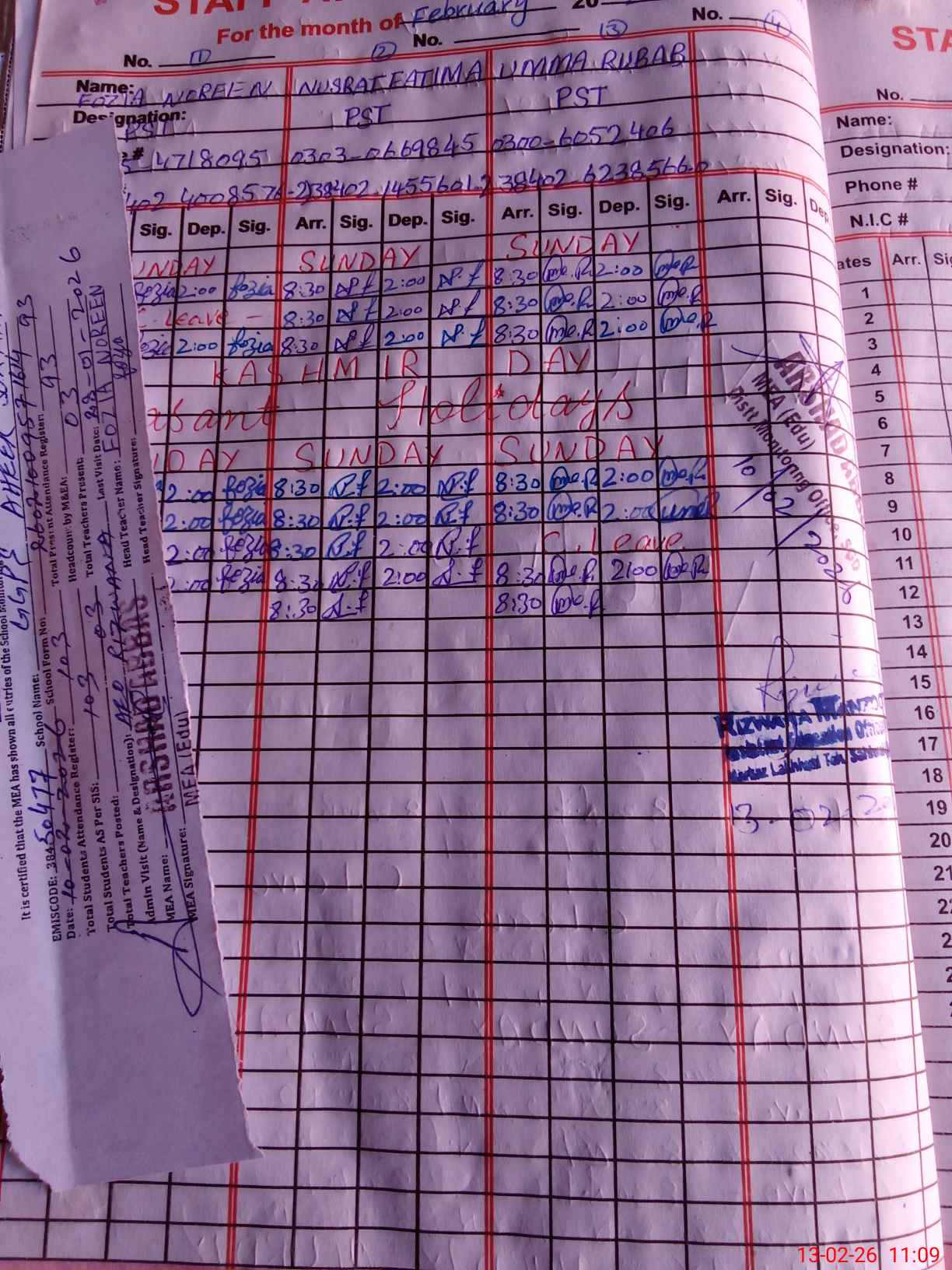 | Name: FO**** NO**** Designation: (School Headmaster's/Headmistress's) PST Phone/Cell Number: 03**** |