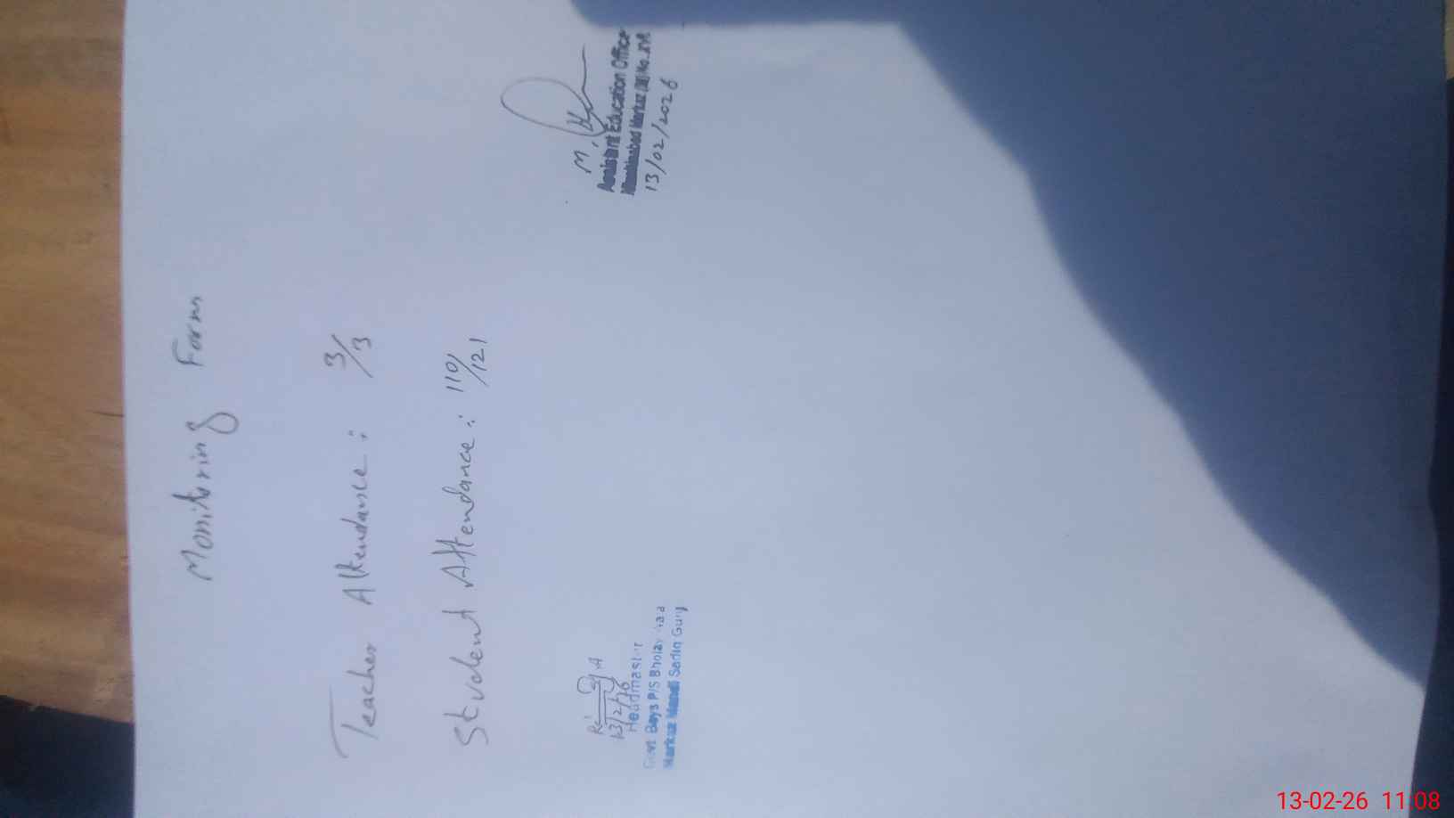 | Attendance Register | Head Teacher | MEA with School | Visit Proof |