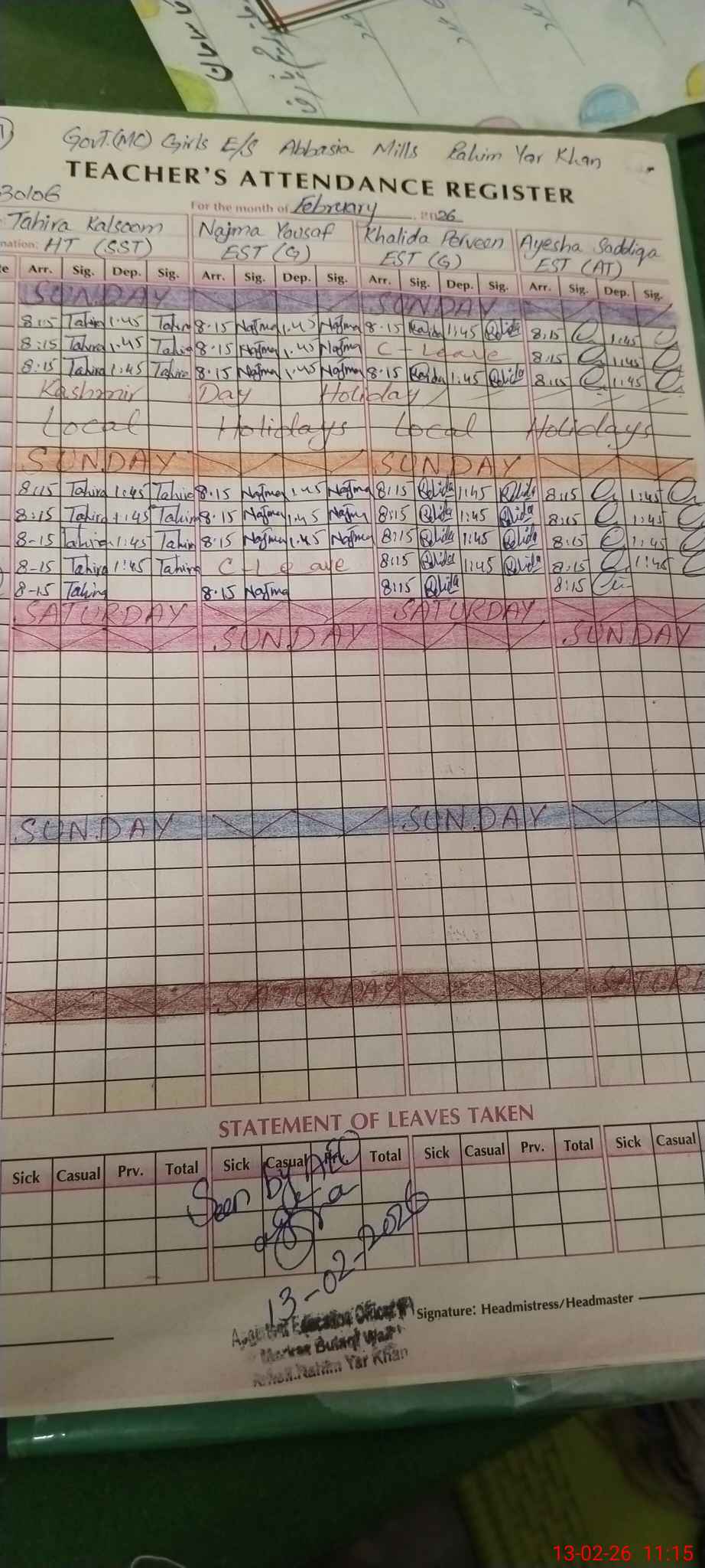 | Name: Sy**** Ta**** Ka**** Designation: (School Headmaster's/Headmistress's) SST Phone/Cell Number: 03**** |