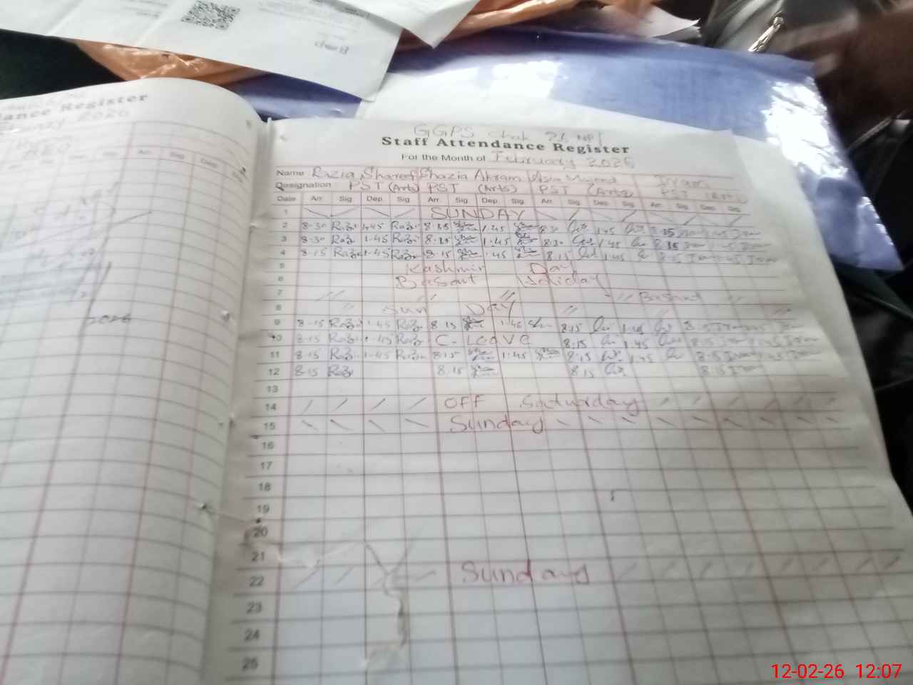 | CNIC | Full Name | Designation | R/C | Absence During Last Calender Month |