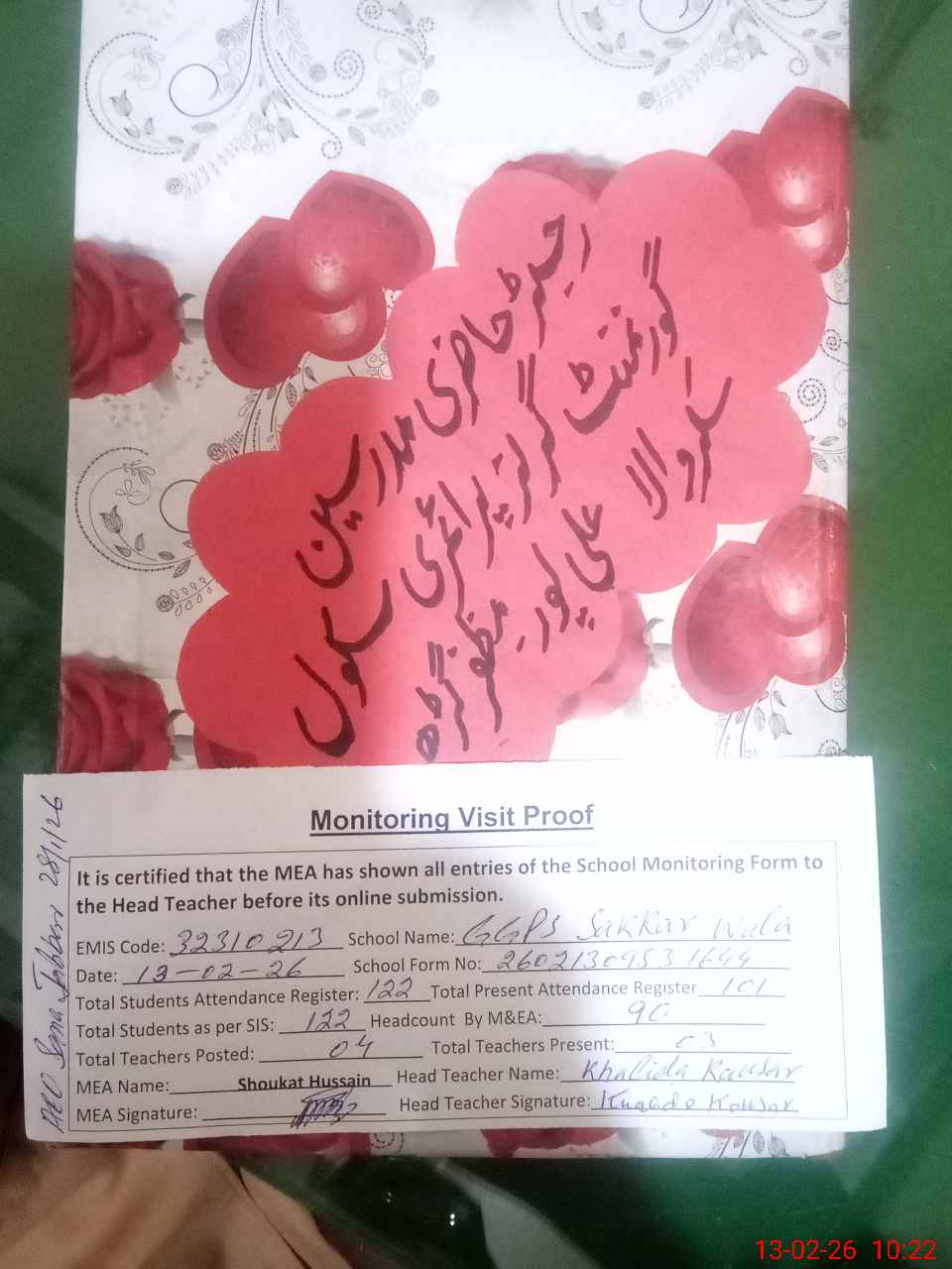 | EMIS Code: 32310213 | Name of School: GGPS SAKKER WALA | |||