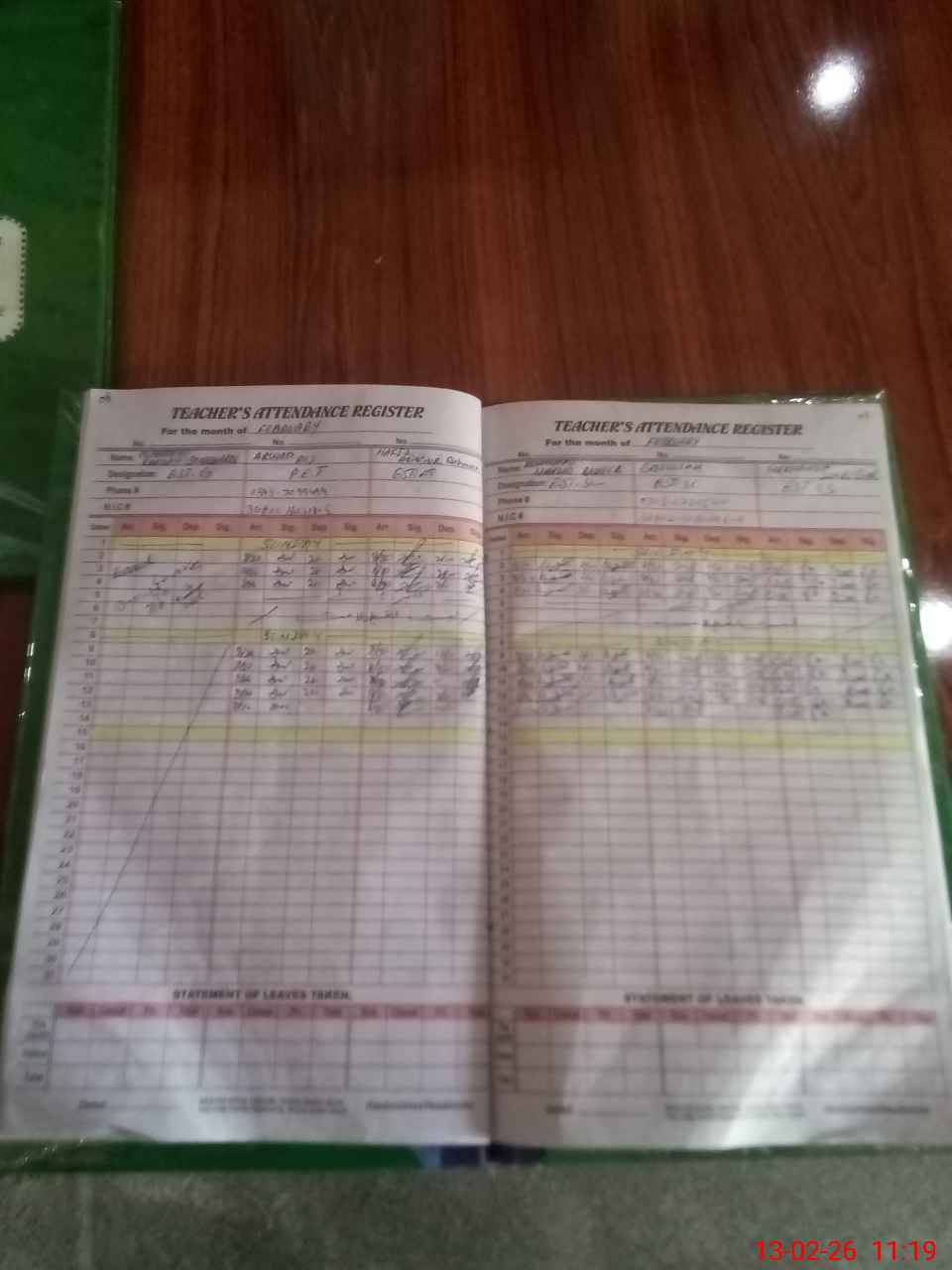 | CNIC | Full Name | Designation | R/C | Absence During Last Calender Month |