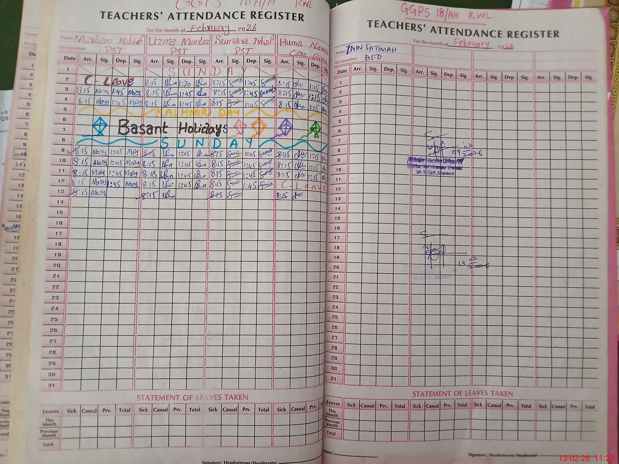 | Name: Ma**** Ha**** Designation: (School Headmaster's/Headmistress's) PST Phone/Cell Number: 03**** |