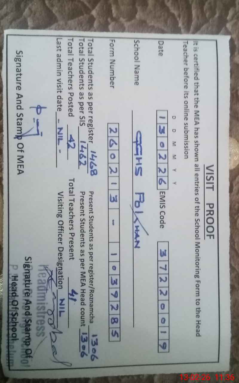 | EMIS Code: 37220019 | Name of School: GGHS PIND DADAN KHAN | |||
