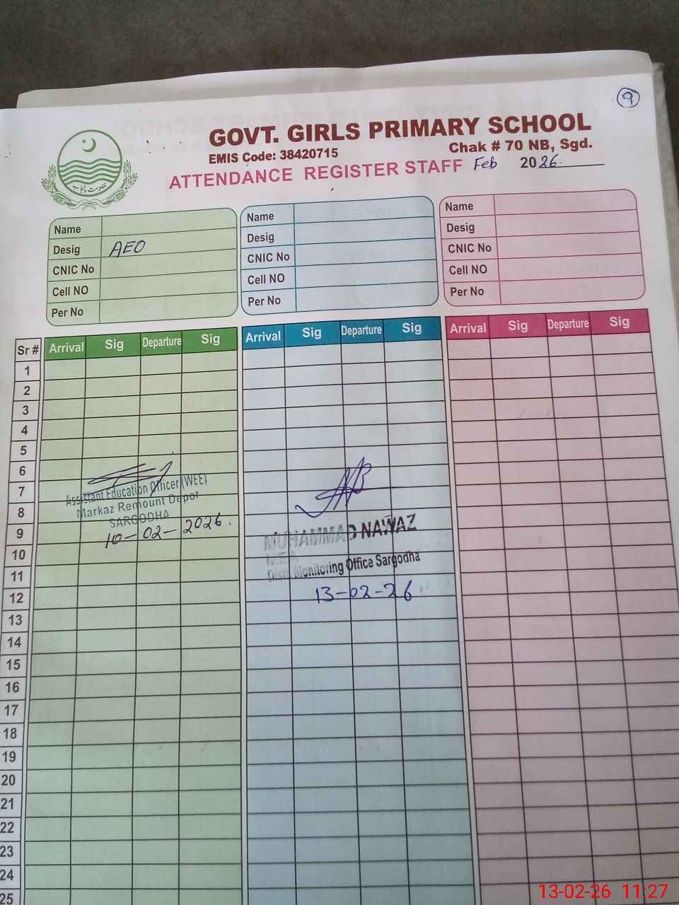 | EMIS Code: 38420715 | Name of School: GGPS CHAK NO.70 NB | |||