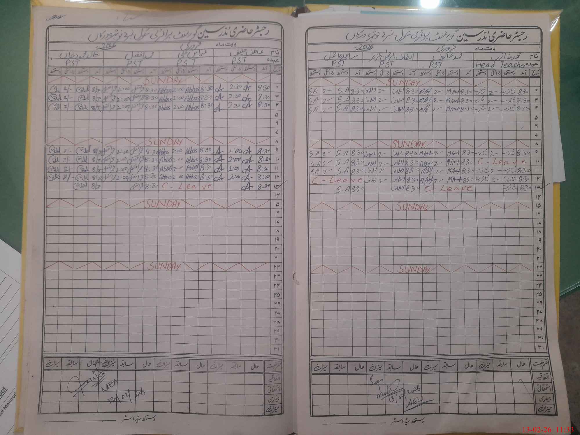 | CNIC | Full Name | Designation | R/C | Absence During Last Calender Month |