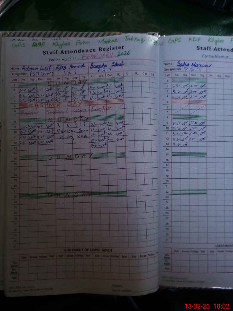 | 35**** | Ej**** Ah**** | PST Arts | Regular | 0 | 0 | 0 | 0 | 0 | 0 | 0 | 0 | 0 | Exam Duty |