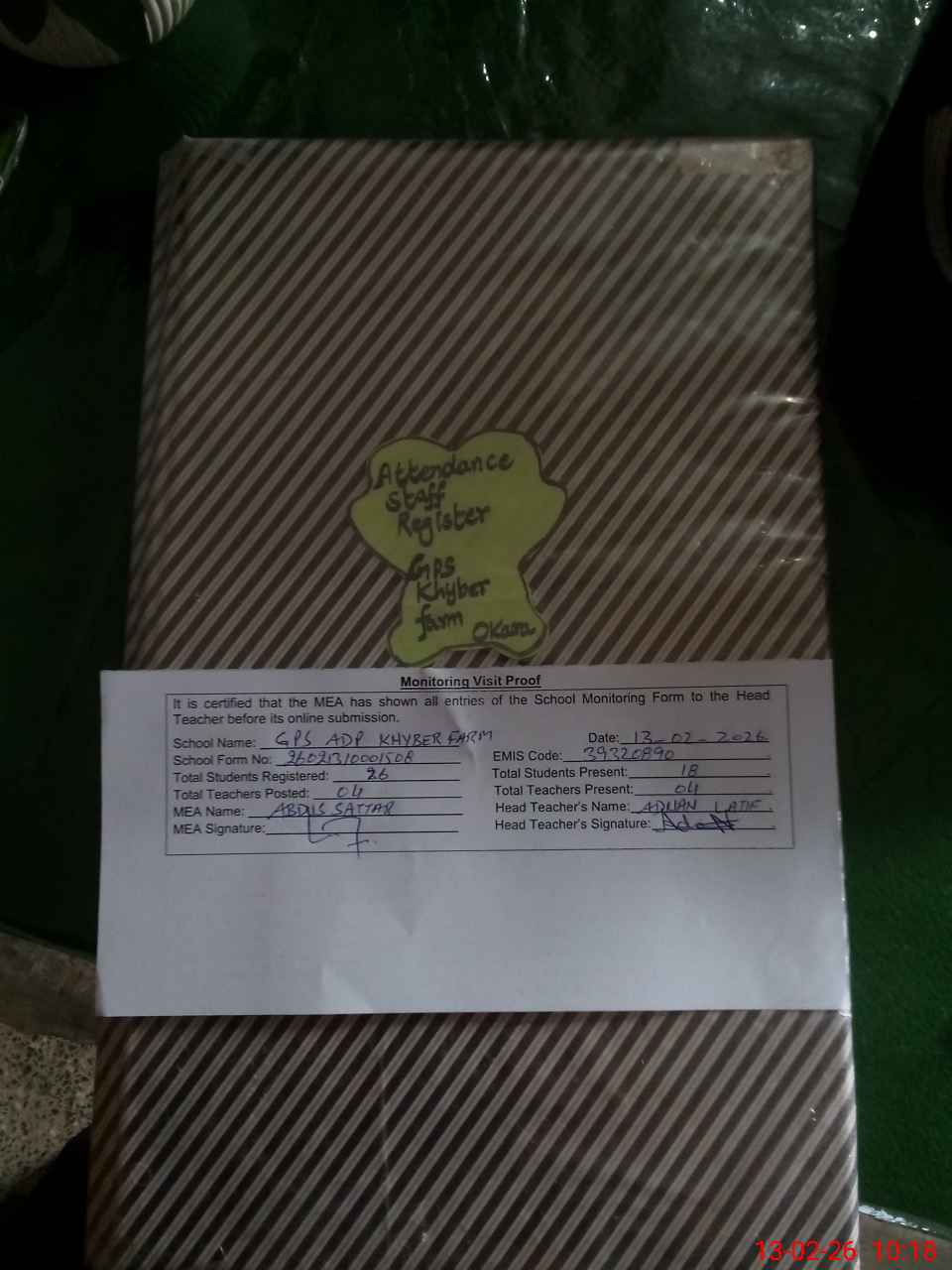 | EMIS Code: 39320890 | Name of School: GPS ADP KHYBER FARM | |||