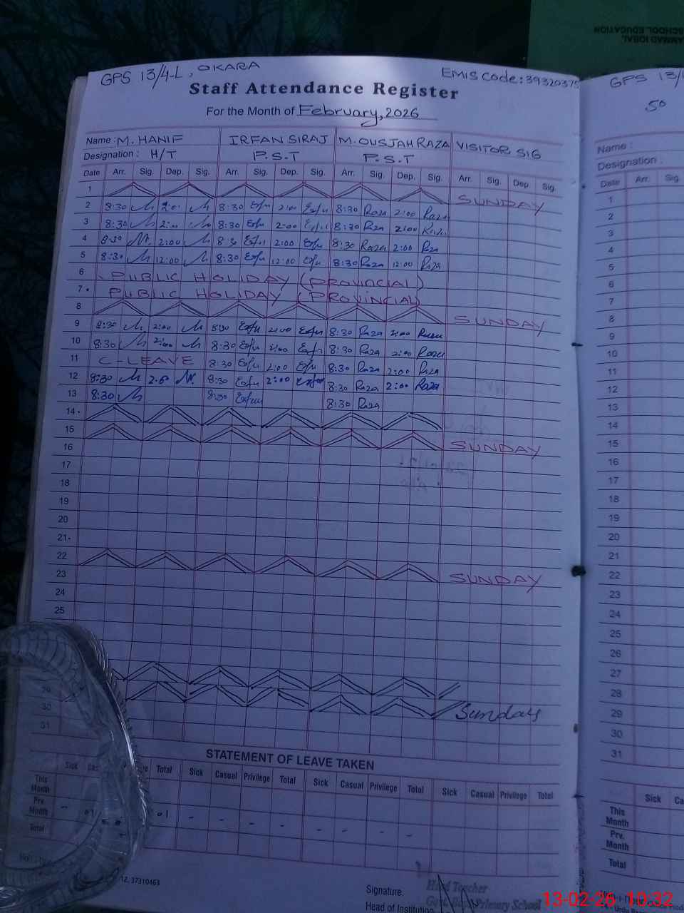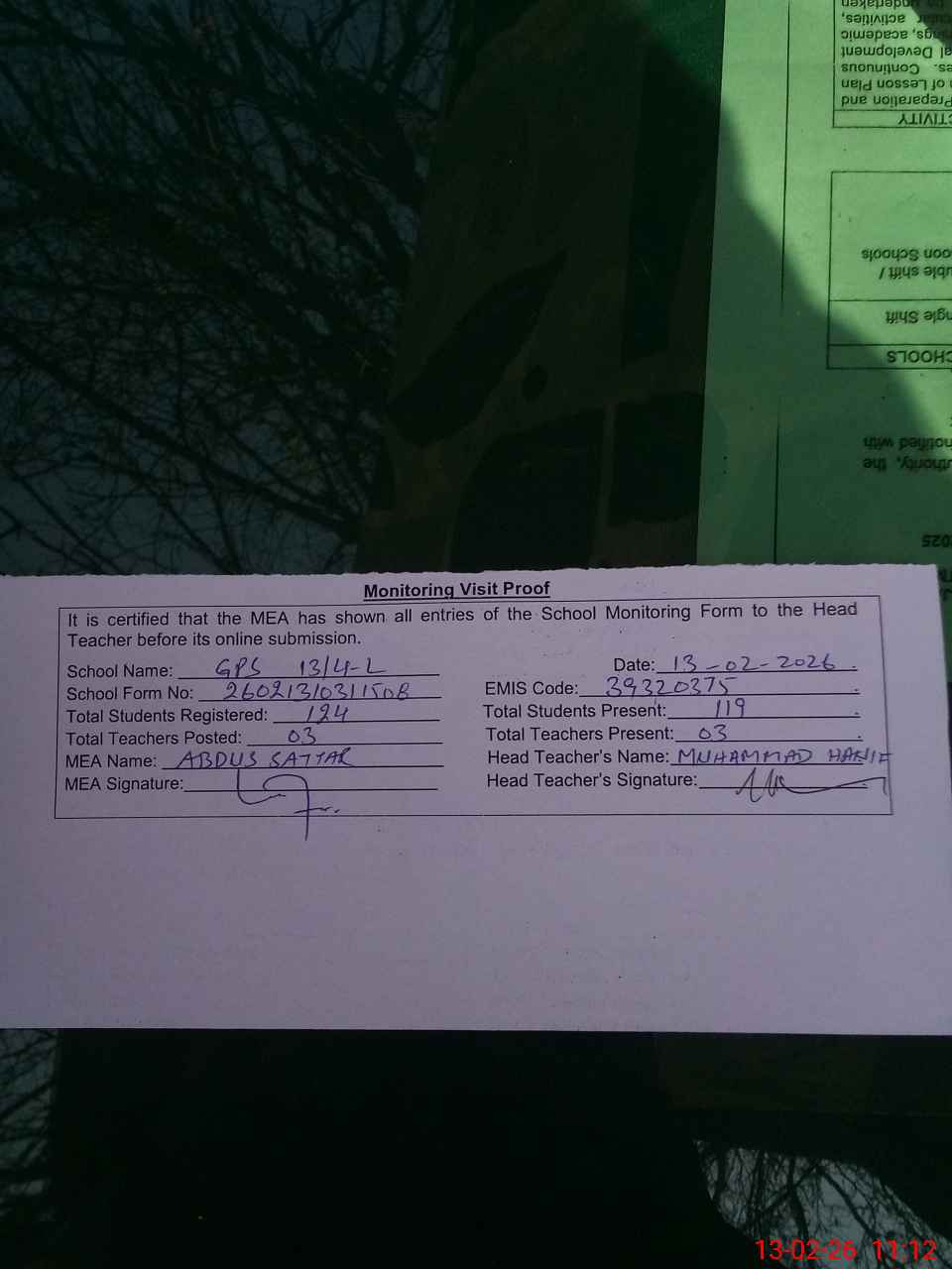 | EMIS Code: 39320375 | Name of School: GPS CHAK 13/4-L | |||