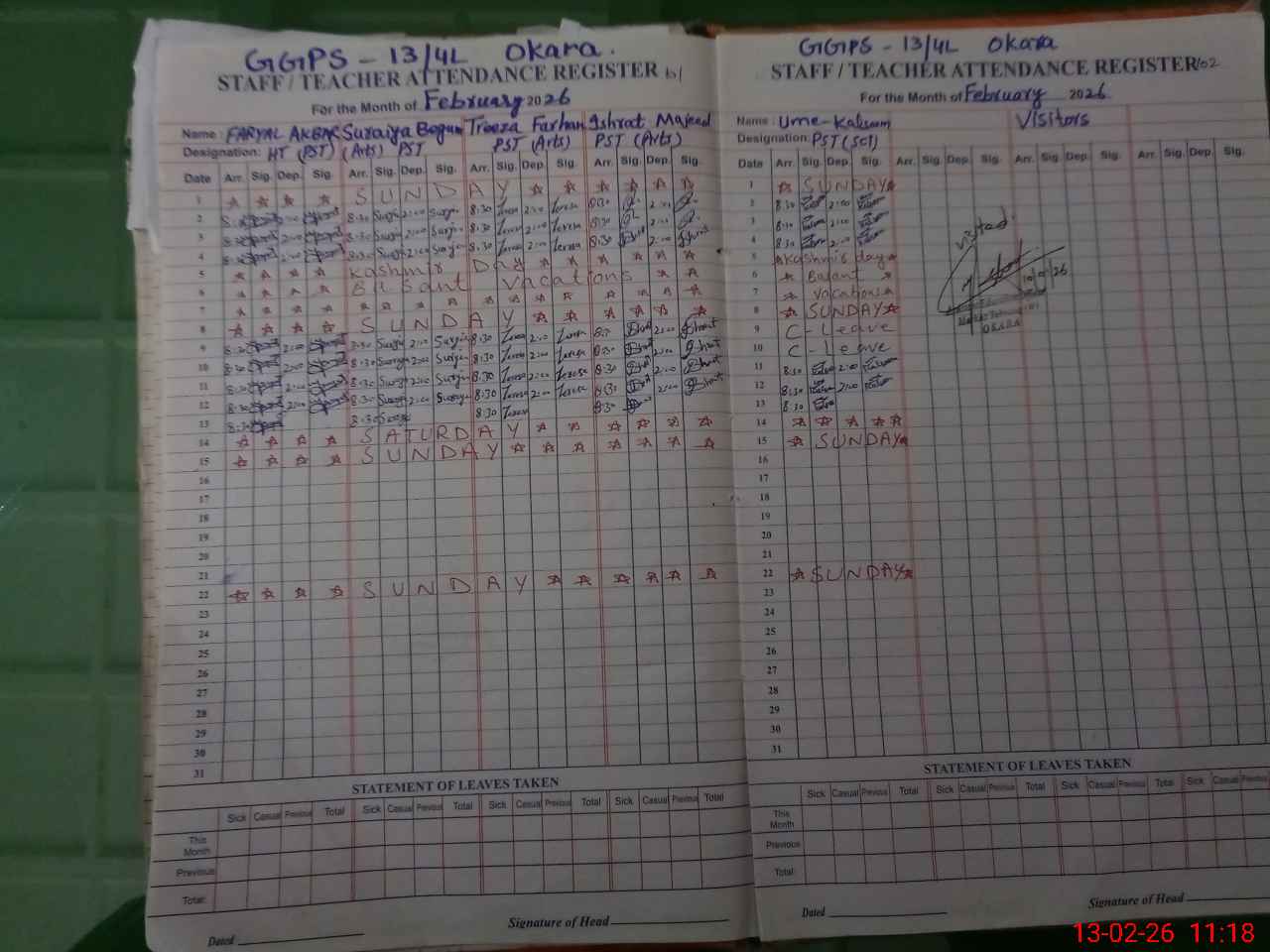 | Leave | Duty | Absent | Maternity | Medical | Ex- Pak |