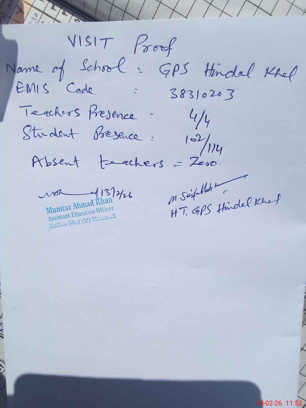 | EMIS Code: 38310203 | Name of School: GPS HINDAL KHEL | |||