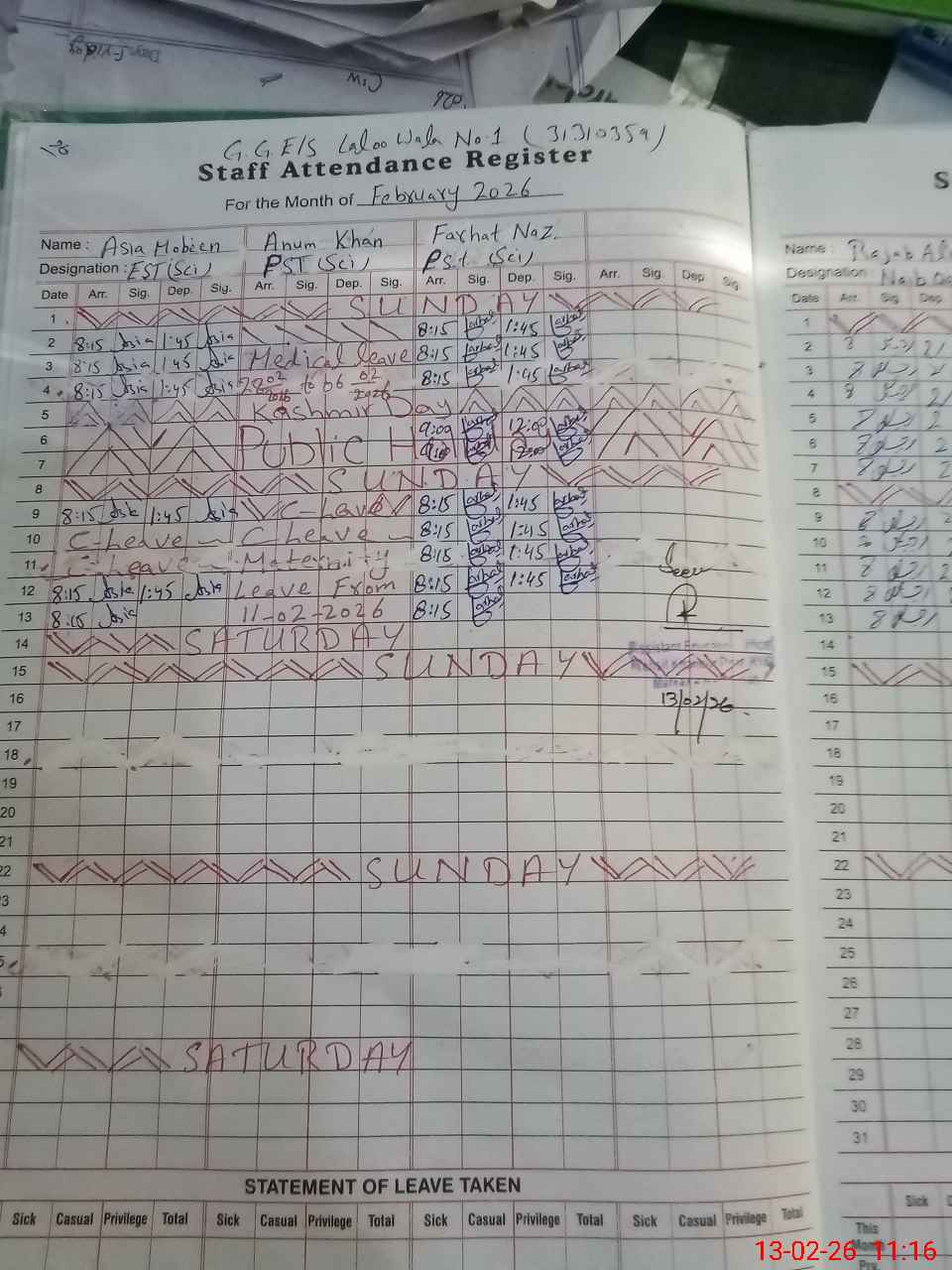 | 31**** | An**** Kh**** | ESE Science | Contract | 0 | 0 | 0 | 0 | 0 | 0 | 0 | 0 | 0 | Maternity |