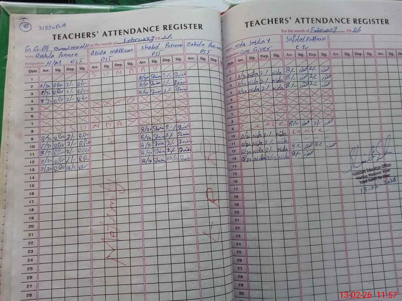 | Attendance Register | Head Teacher | MEA with School | Visit Proof |