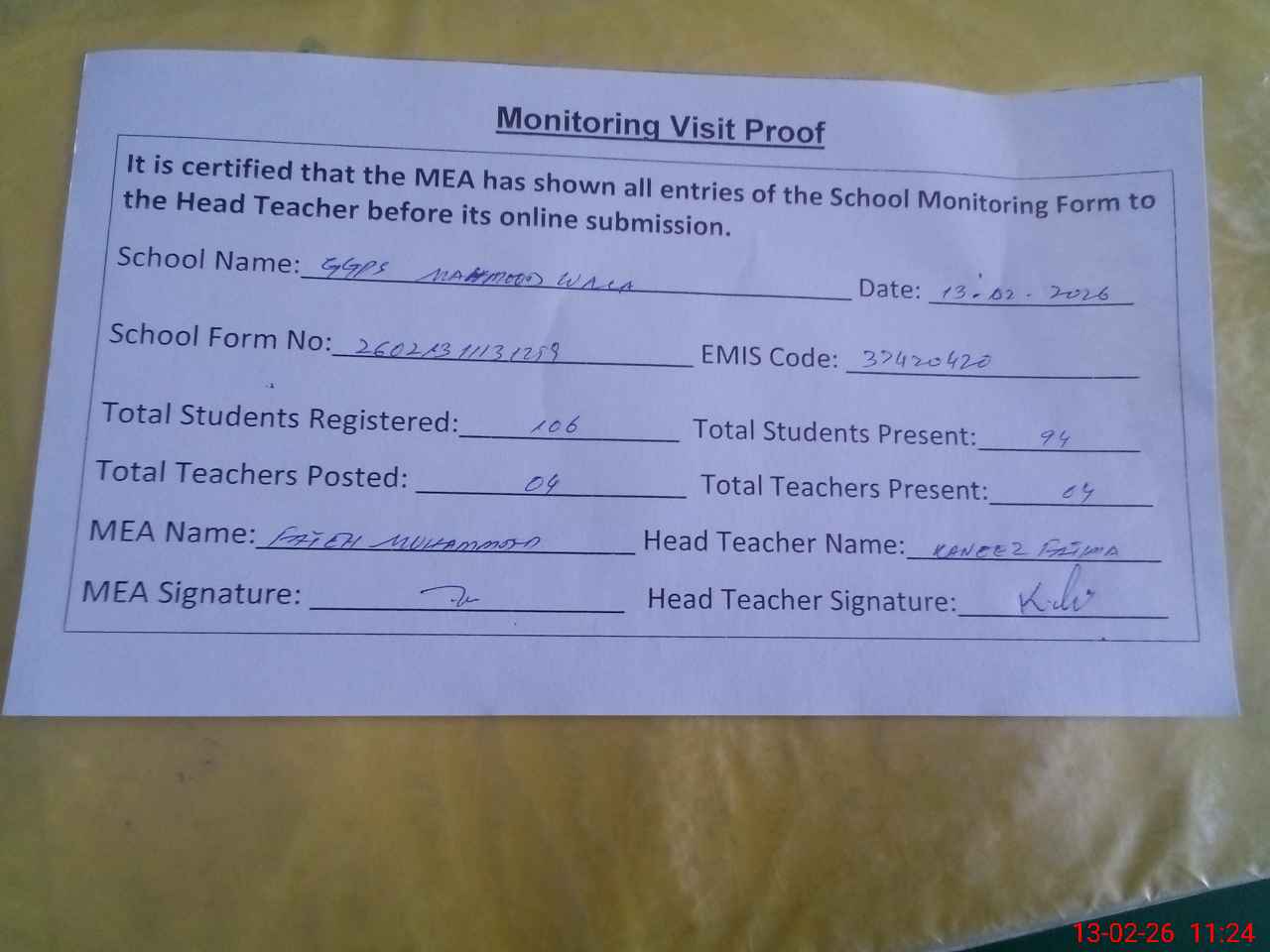 | EMIS Code: 37420420 | Name of School: GGPS MAHMOOD WALA | |||