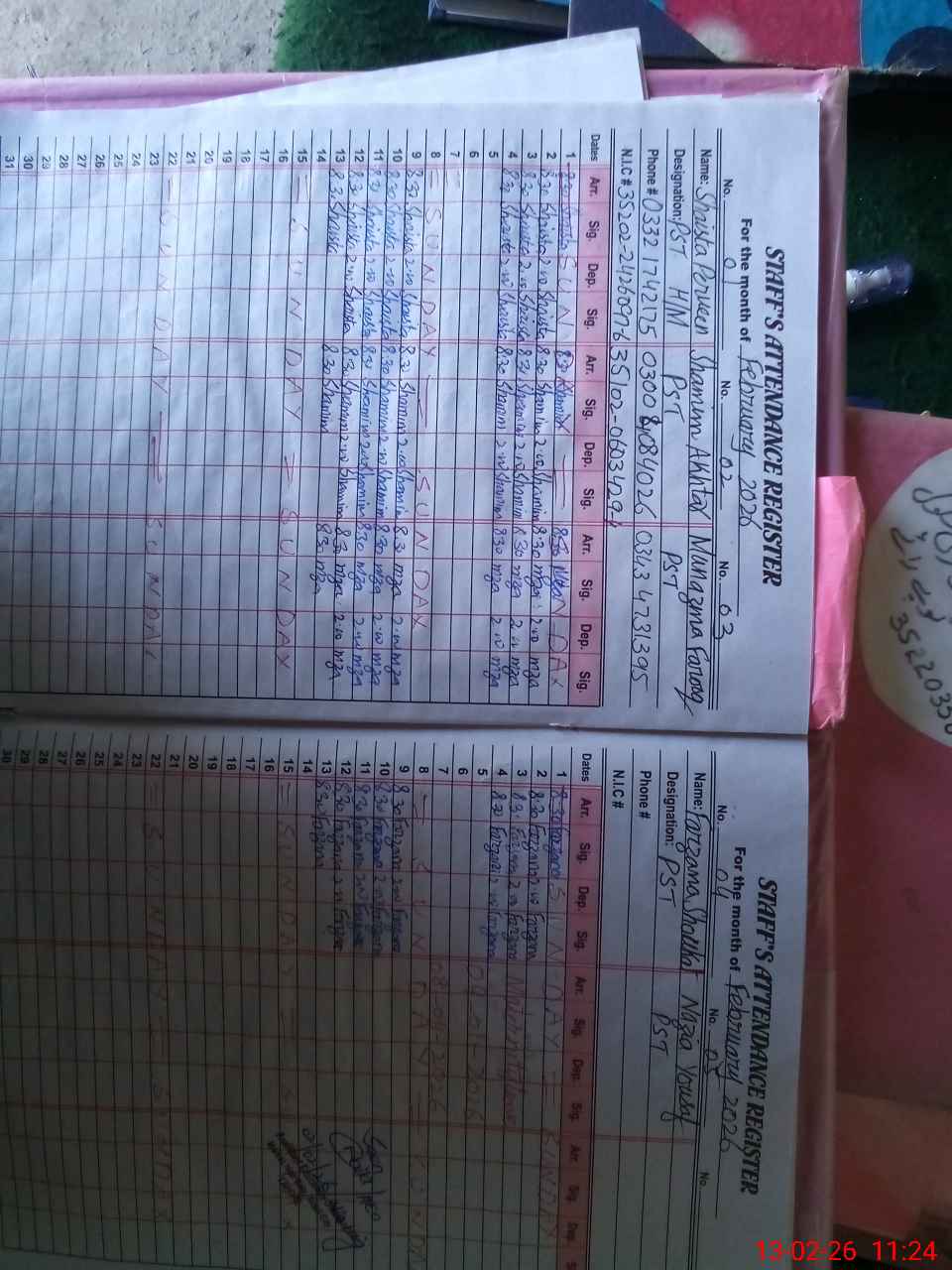 | Name: SH**** PA**** Designation: (School Headmaster's/Headmistress's) Head Mistress Phone/Cell Number: 03**** |