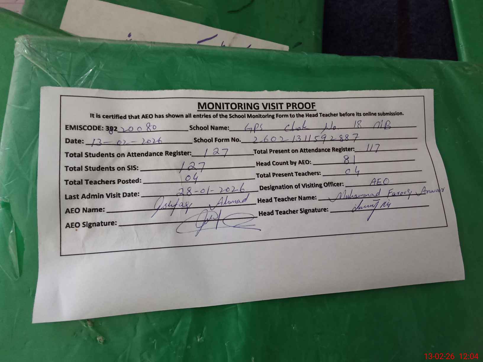 | EMIS Code: 38220080 | Name of School: GPS CHAK NO. 18/MB | |||